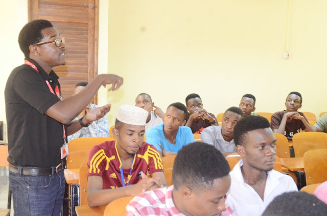 Meneja wa Biashara na Mkakati wa Mauzo wa Vodacom Tanzania Plc kanda ya Dar es Salaam na Pwani, Caleb Majo (kushoto) akizungumza na wanafunzi wa Chuo cha Uongozi wa Fedha (IFM) wakati wa mafunzo ya kuwajengea uwezo na uelewa wa teknolojia za kifedha jijini Dar es Salaam hivi karibuni. Semina hiyo imefanyika chini ya Vodacom Tanzania Foundation kwa kushirikiana na Taasisi ya Green Hope ili kuhakikisha wanafunzi hao wanapata ufahamu wa teknolojia hizo na mchango wake katika kuchochea ushirikishwaji wa kifadha. Meneja wa Biashara na Mkakati wa Mauzo wa Vodacom Tanzania Plc kanda ya Dar es Salaam na Pwani, Caleb Majo (kushoto) akizungumza na wanafunzi wa Chuo cha Uongozi wa Fedha (IFM) wakati wa mafunzo ya kuwajengea uwezo na uelewa wa teknolojia za kifedha jijini Dar es Salaam hivi karibuni.Meneja mauzo wa eneo la katikati ya jiji wa Vodacom Tanzania Plc, George Nyanda (kulia) akizungumza na wanafunzi wa Chuo cha Uongozi wa Fedha (IFM) wakati wa mafunzo ya kuwajengea uwezo na uelewa wa teknolojia za kifedha jana jijini Dar es Salaam. Semina hiyo imetolewa chini ya Vodacom Tanzania Foundation kwa kushirikiana na Taasisi ya Green Hope ili kuhakikisha vijana wanapata ufahamu wa teknolojia hizo na mchango wake katika kuchochea ushirikishwaji wa kifedha.Meneja mauzo wa eneo la katikati ya jiji wa Vodacom Tanzania Plc, George Nyanda (kulia) akizungumza na wanafunzi wa Chuo cha Uongozi wa Fedha (IFM) wakati wa mafunzo ya kuwajengea uwezo na uelewa wa teknolojia za kifedha jana jijini Dar es Salaam.