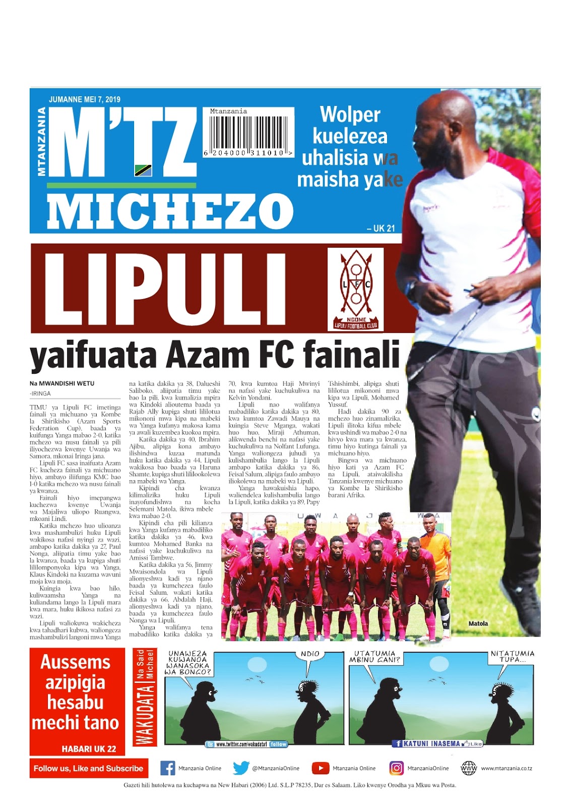 MAGAZETI YA TANZANIA LEO JUMANNE, MEI 7, 2019