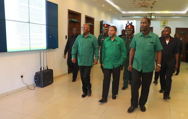 Mwenyekiti wa Chama cha Mapinduzi (CCM) ambaye pia ni Rais wa Jamhuri ya Muungano wa Tanzania Mhe.Dkt. John Pombe Magufuli akiongoza kikao cha Maadili na Usalama cha chama kilichofanyika katika ofisi ndogo za Makao makuu ya Chama hicho Lumumba Jijini Dar es salaam. June 26, 2019.Mwenyekiti wa Chama cha Mapinduzi (CCM) ambaye pia ni Rais wa Jamhuri ya Muungano wa Tanzania Mhe.Dkt. John Pombe Magufuli akiwa na Makamu mwenyekiti wa CCM na Rais wa Zanzibar Mhe. Dkt Ali Mohammed Shein mara baada ya kikao cha Maadili na Usalama pamoja na kikao cha Kamati kuu ya Chama hicho vilivyofanyika katika ofisi ndogo za Makao makuu ya Chama hicho Lumumba Jijini Dar es salaam. June 26, 2019.