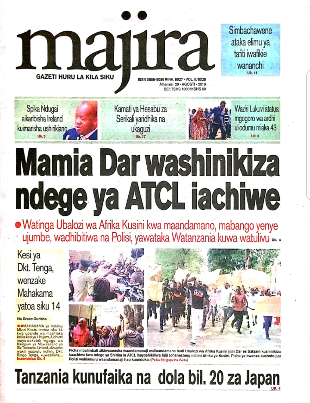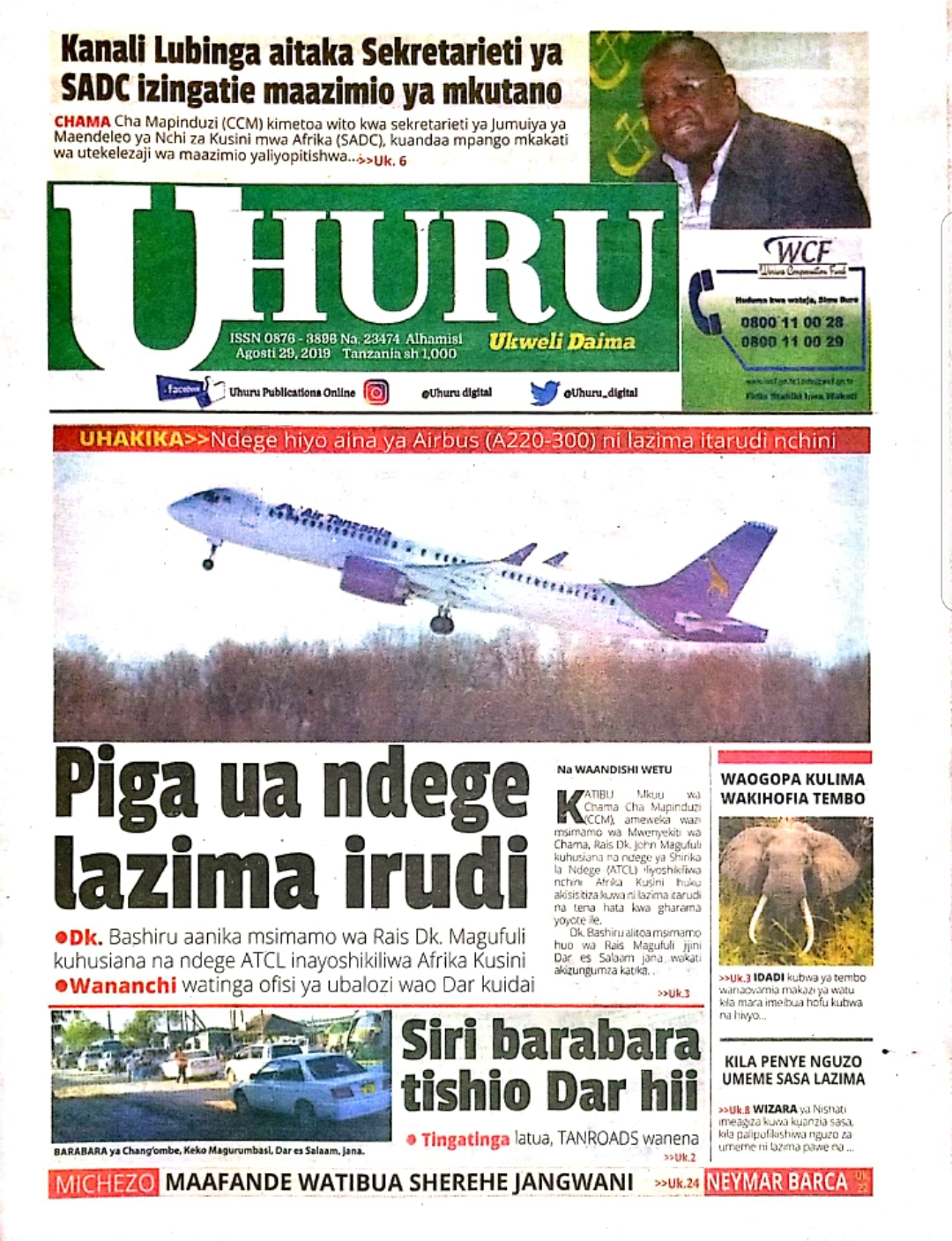 Magazeti ya Tanzania Leo Alhamisi, Agosti 29, 2019 Global Publishers August 29, 2019 SHARE THIS: Hapa tumekuanikia kurasa za mbele na za nyuma za magazeti yote ya Tanzania leo Agosti 29, 2019. Ni yale ya Hardnews, Udaku na Michezo. Usipitwe na Matukio, Install App Yako ya Kijanja na Namba Moja Tanzania ya Global Publishers Android ===> GooglePlay iOS ===> AppStore SHARE THIS: