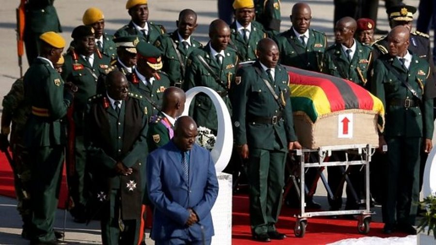 Mugabe alifariki wiki iliyopita nchini Singapore alikokuwa akipatiwa matibabu na mwili wake kuwasili Zimbabwe jana kwa ajili ya kuagwa na mazishi ambayo yanatarajiwa kufanyika wiki ijayo ( kwa mujibu wa familia lakini siku haijatajwa) kijijini kwao, Kutama.
