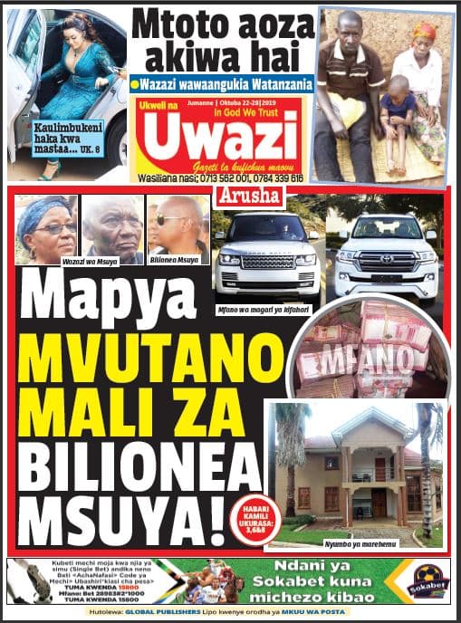 Magazeti ya Tanzania Leo Jumanne, Oktoba 22, 2019 Global Publishers October 22, 2019 SHARE THIS: Hapa tumekuanikia kurasa za mbele na za nyuma za magazeti yote ya Tanzania leo Oktoba 22, 2019. Ni yale ya Hardnews, Udaku na Michezo. Usipitwe na Matukio, Install App Yako ya Kijanja na Namba Moja Tanzania ya Global Publishers Android ===> GooglePlay iOS ===> AppStore SHARE THIS: