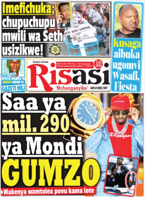 Nunua Gazeti la Risasi Jumatano (Tsh 300): Saa ya Mil. 290 ya MONDI Gumzo