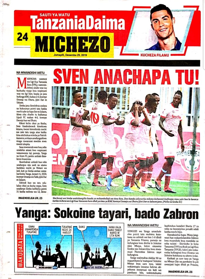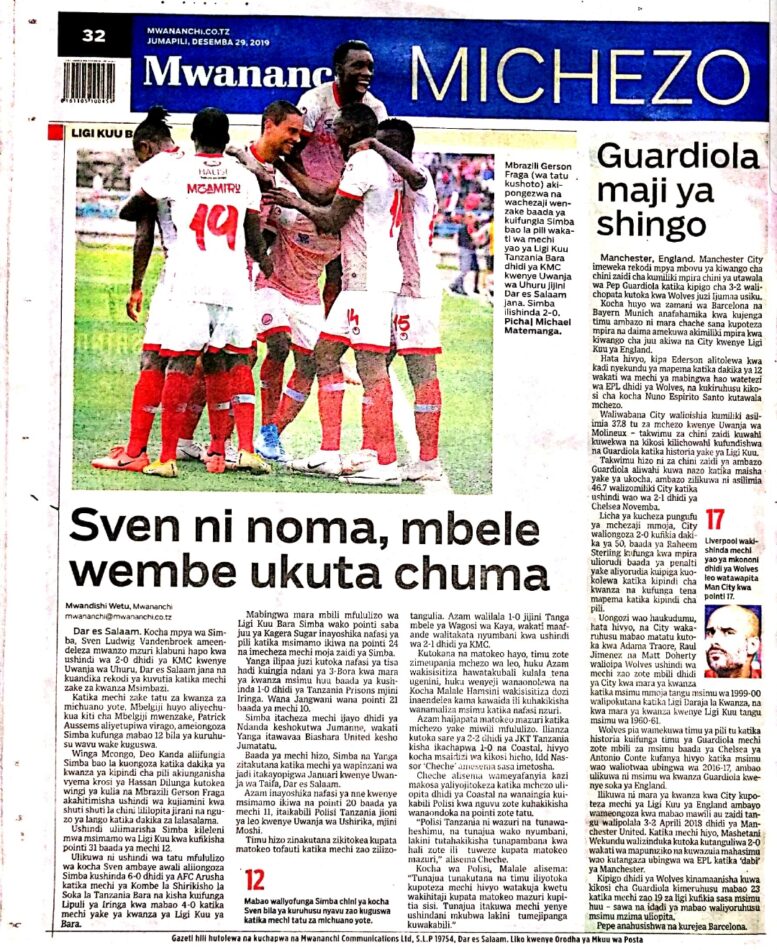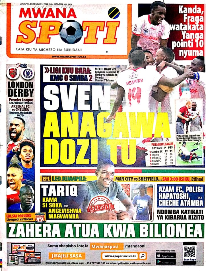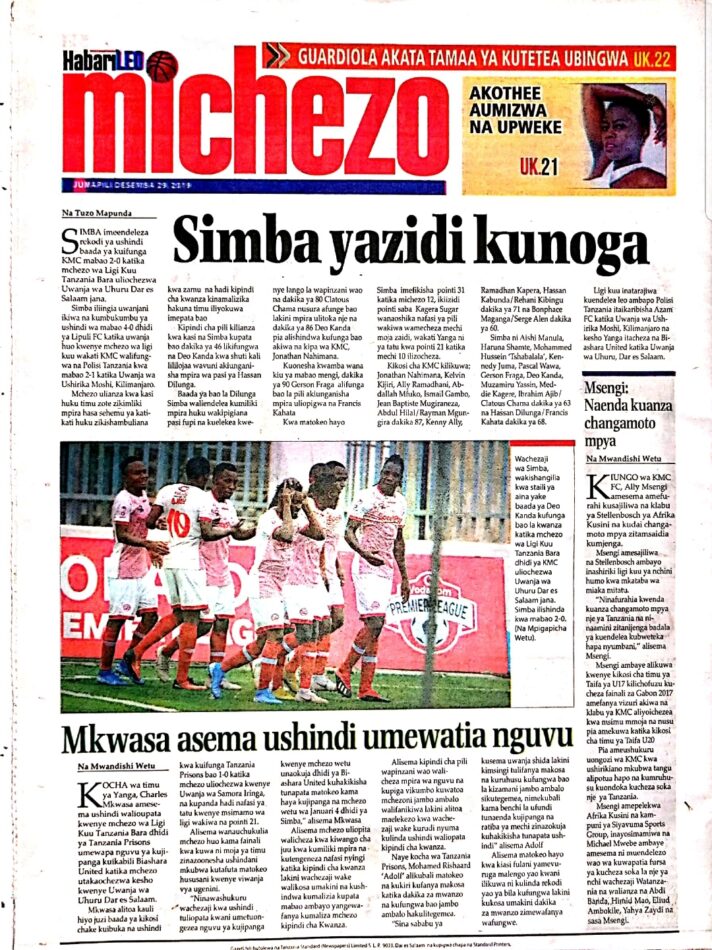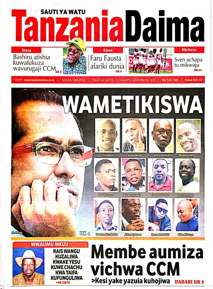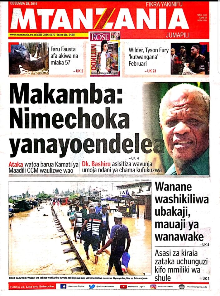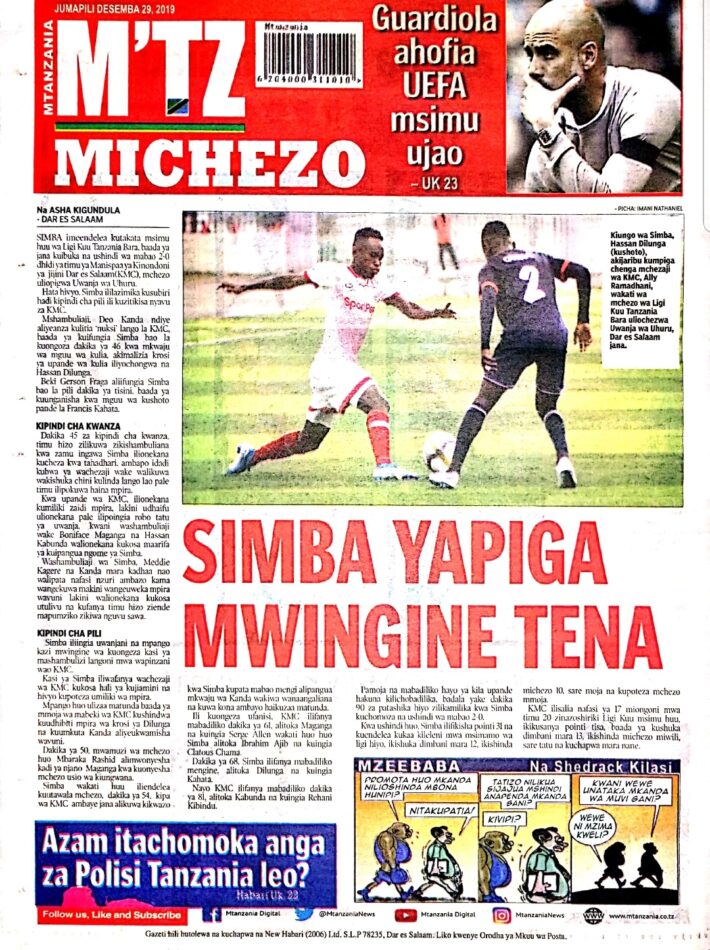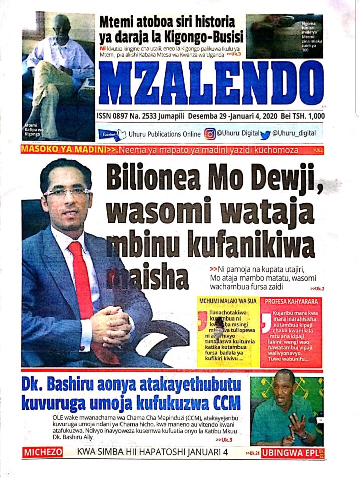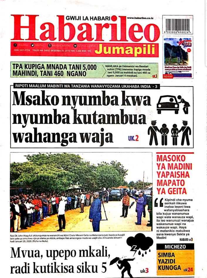 Hapa tumekuanikia kurasa za mbele na za nyuma za magazeti yote ya Tanzania leo Desemba 29, 2019. Ni yale ya Hardnews, Udaku na Michezo.