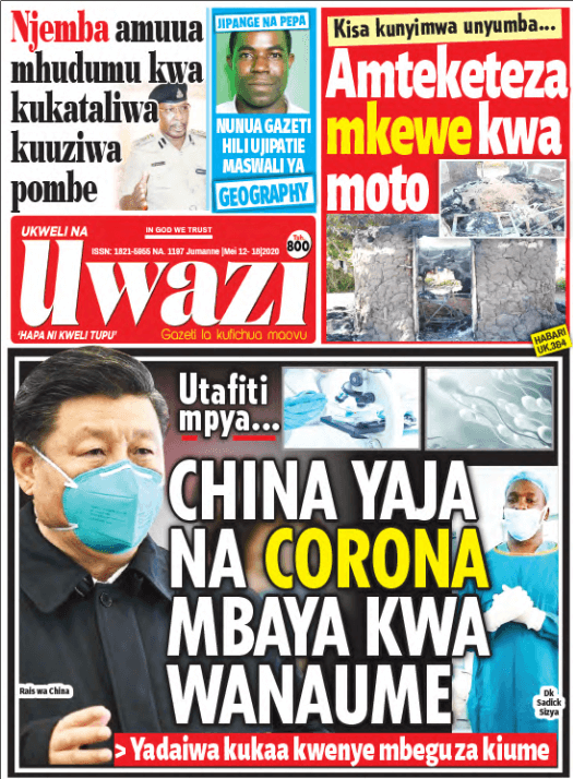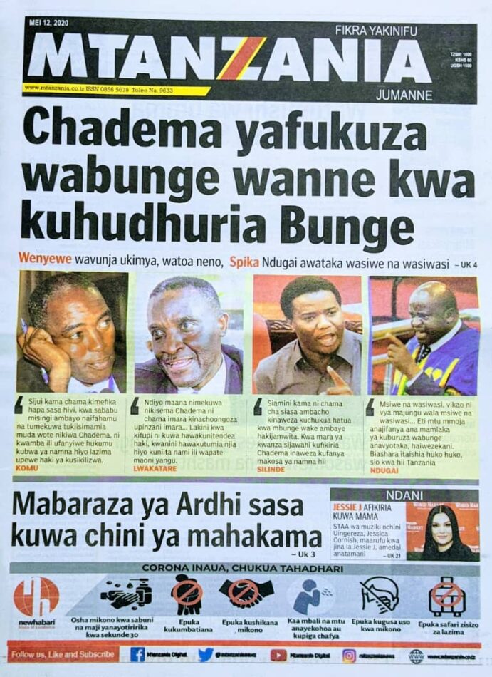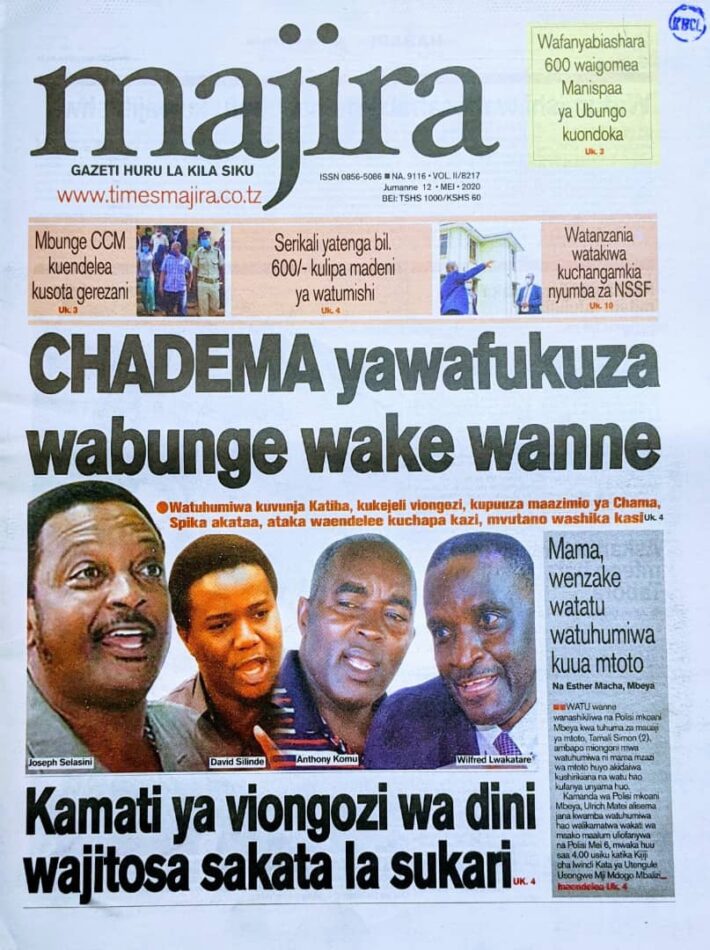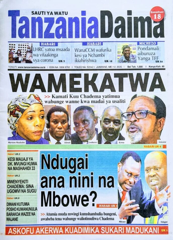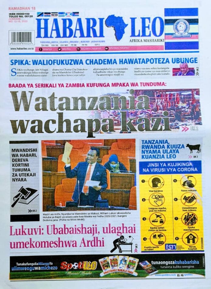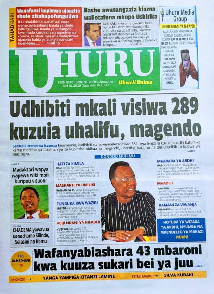 Hapa tumekuanikia kurasa za mbele na za nyuma za magazeti yote ya Tanzania leo MEI 12, 2020. Ni yale ya Hard-news, Udaku na Michezo.