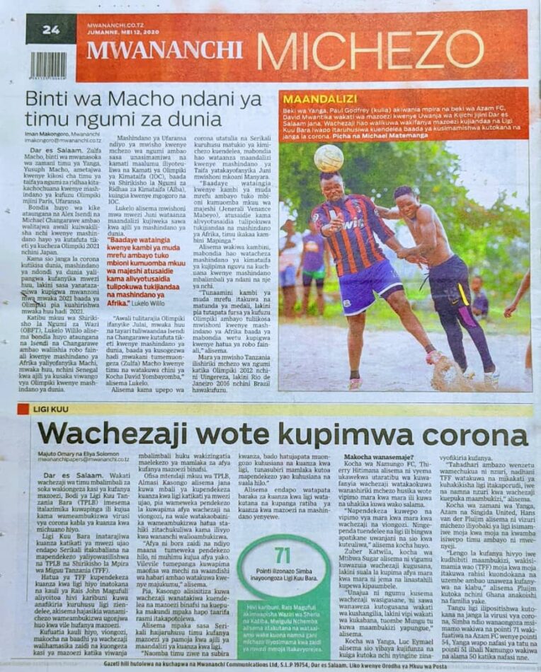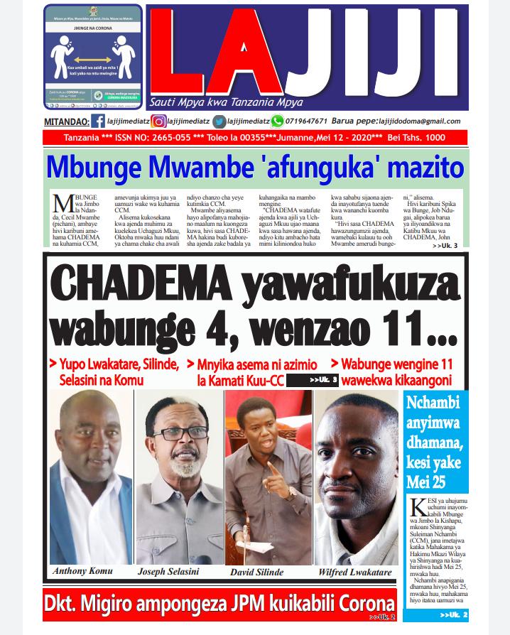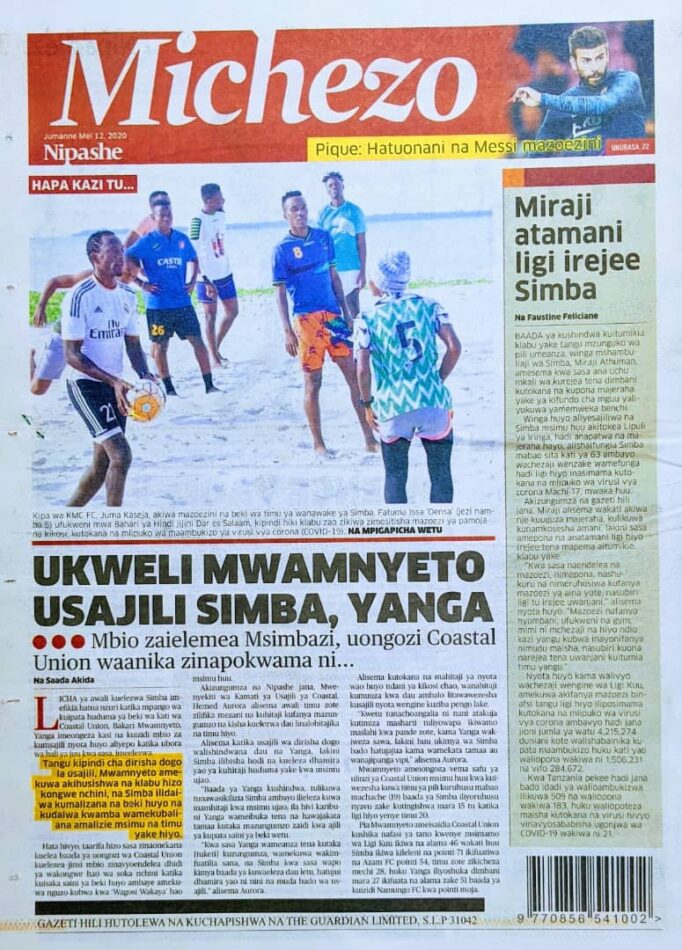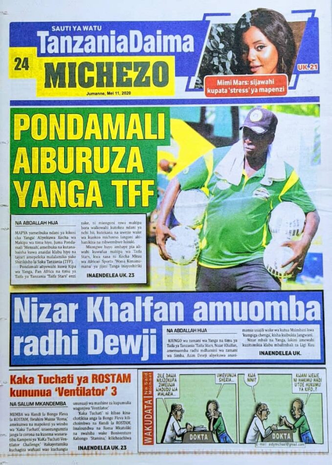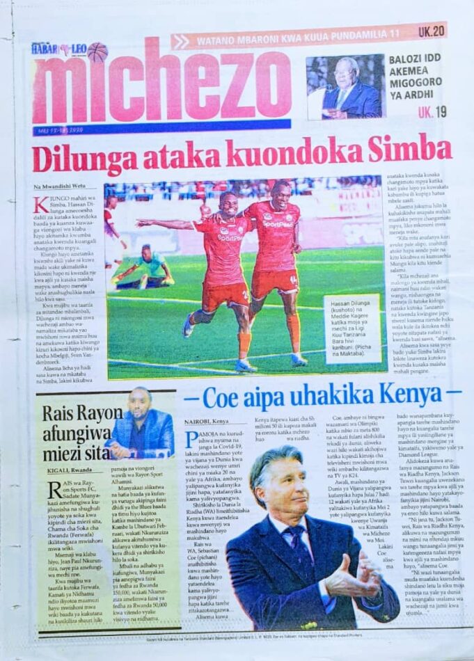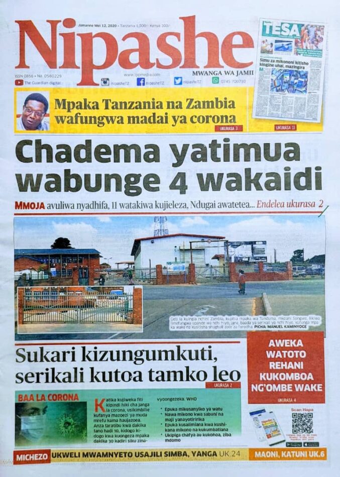 Hapa tumekuanikia kurasa za mbele na za nyuma za magazeti yote ya Tanzania leo MEI 12, 2020. Ni yale ya Hard-news, Udaku na Michezo.