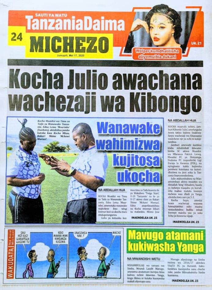 Hapa tumekuanikia kurasa za mbele na za nyuma za magazeti yote ya Tanzania leo MEI 17, 2020. Ni yale ya Hard-news, Udaku na Michezo.