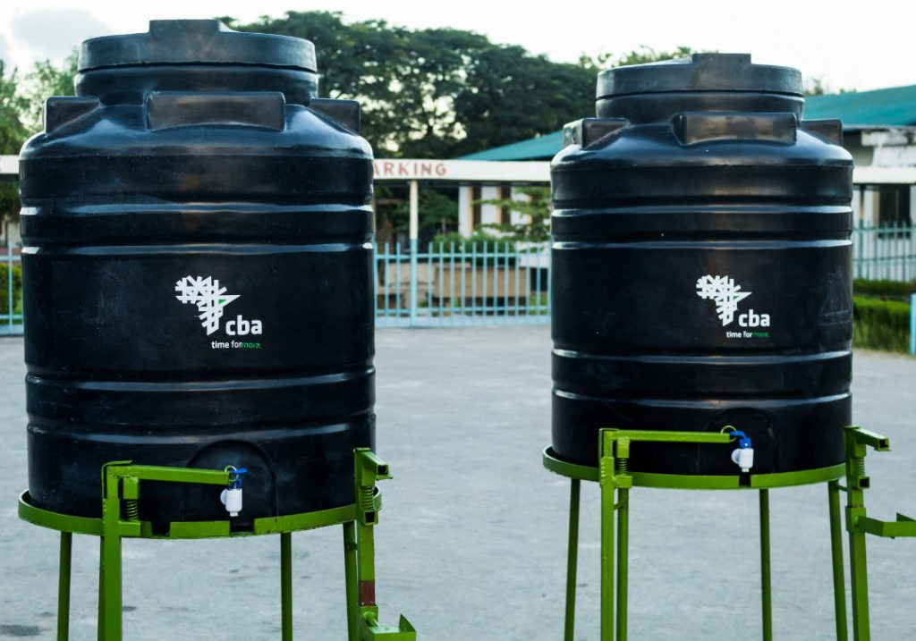Tarehe 15 Mei 2020, Dar es Salaam Benki ya Commercial Bank of Africa (CBA) Tanzania imetoa msaada wa matanki nane ya maji yasiyo na mkono kwa hospitali nne zilizochaguliwa jijini Dar es salaam kukabiliana na mahitaji yanayoongezeka ya kusafisha mikono ambayo ni hatua muhimu katika kupambana na COVID-19.