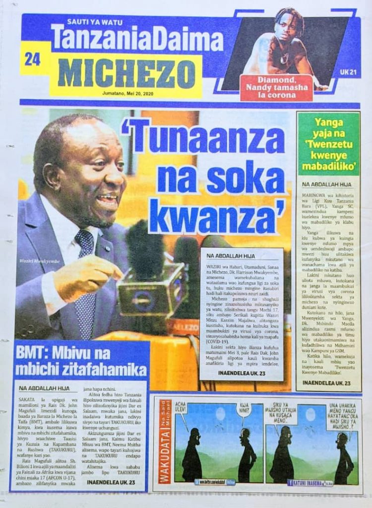 Hapa tumekuanikia kurasa za mbele na za nyuma za magazeti yote ya Tanzania leo MEI 20, 2020. Ni yale ya Hard-news, Udaku na Michezo.