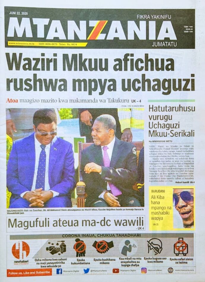 Hapa tumekuanikia kurasa za mbele na za nyuma za magazeti yote ya Tanzania leo Juni 22, 2020