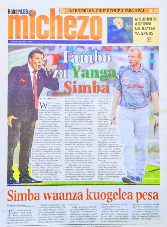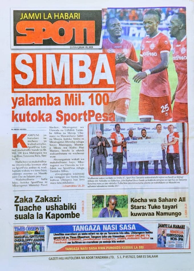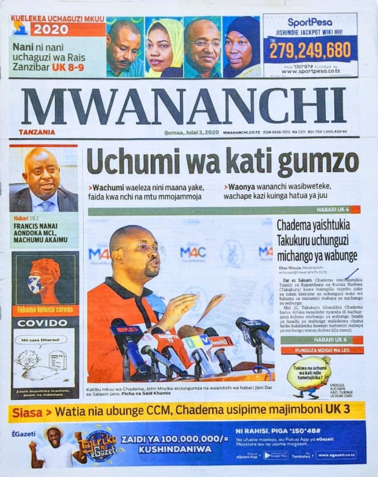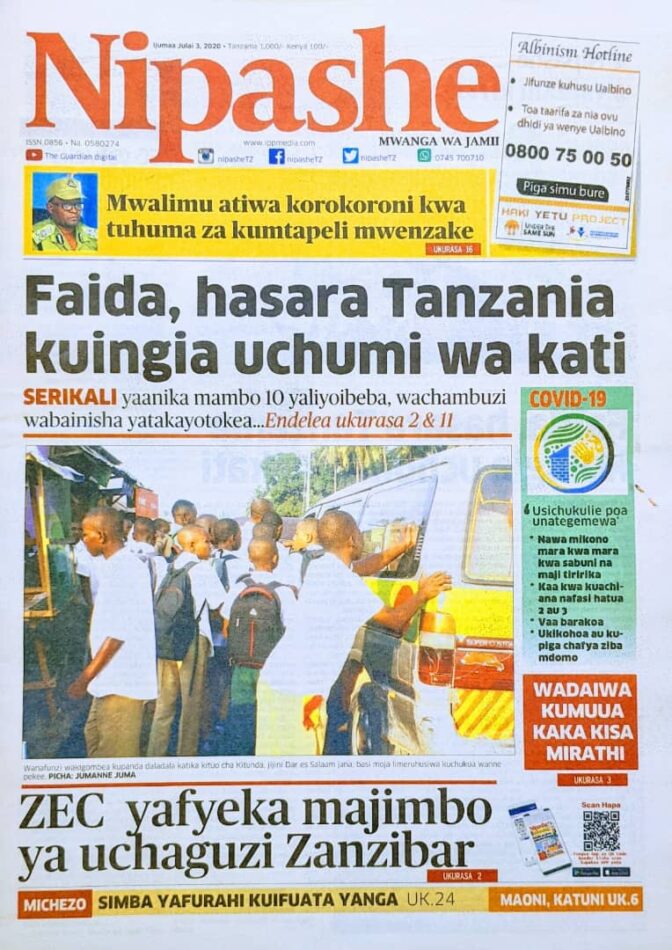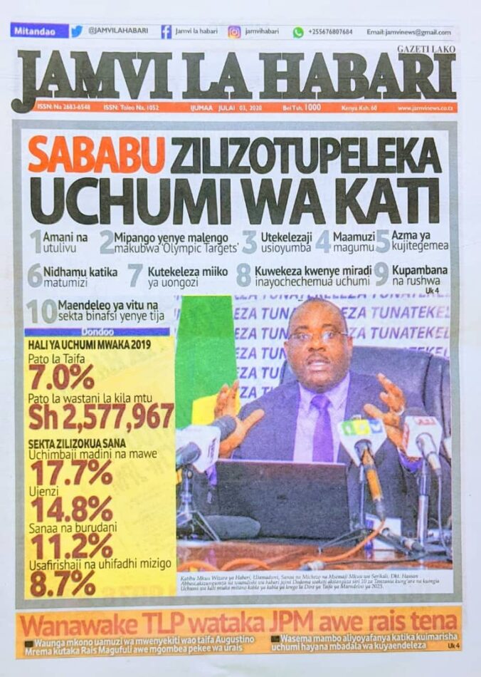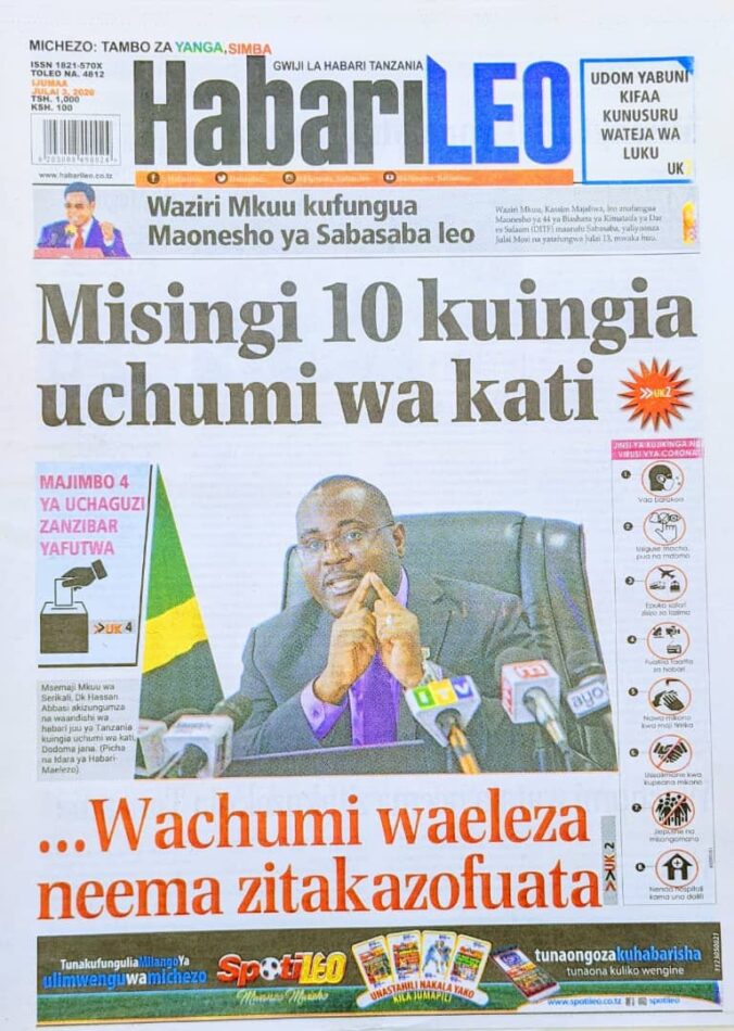 Hapa tumekuanikia kurasa za mbele na za nyuma za magazeti yote ya Tanzania leo Julai 3, 2020