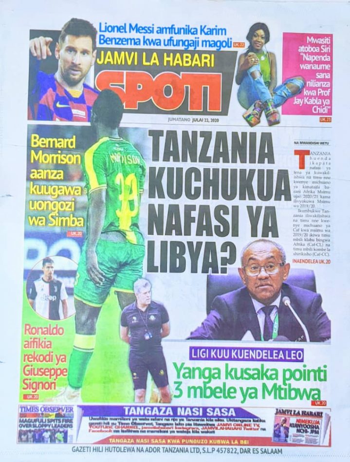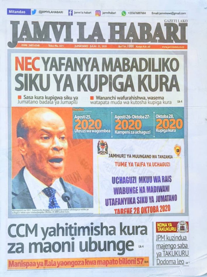 Hapa tumekuanikia kurasa za mbele na za nyuma za magazeti yote ya Tanzania leo Julai 22, 2020