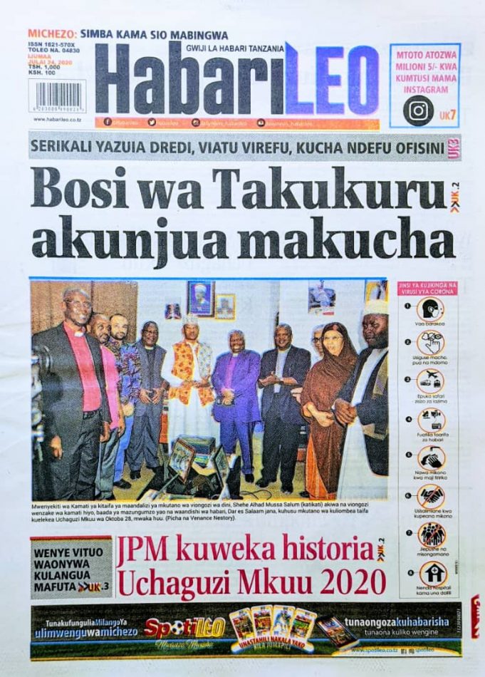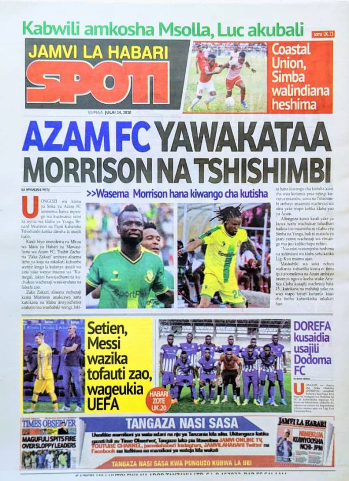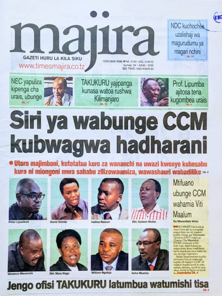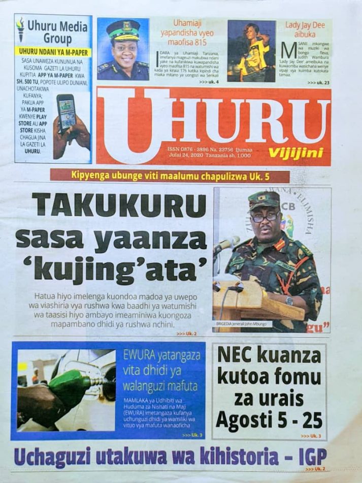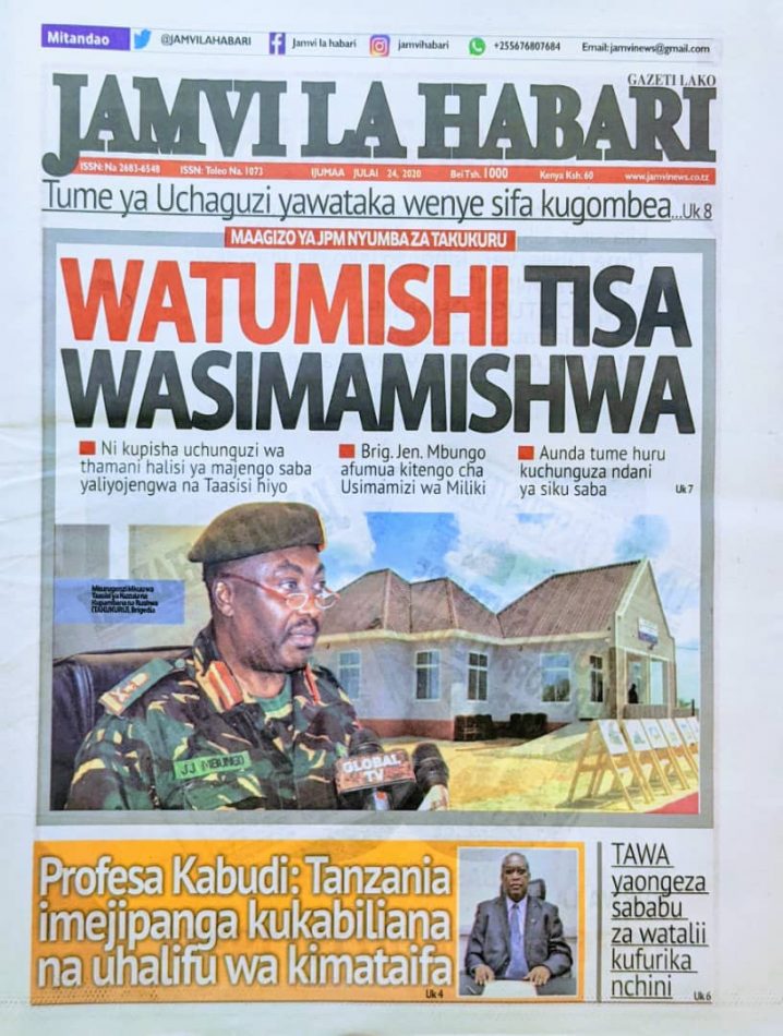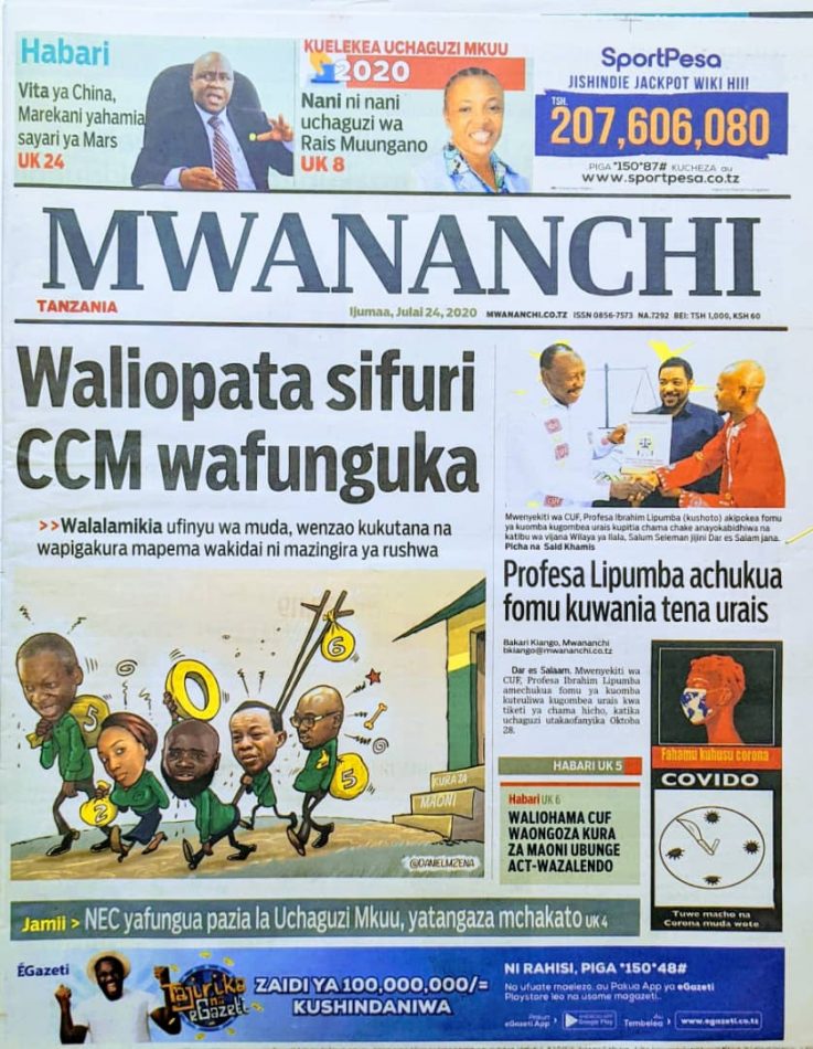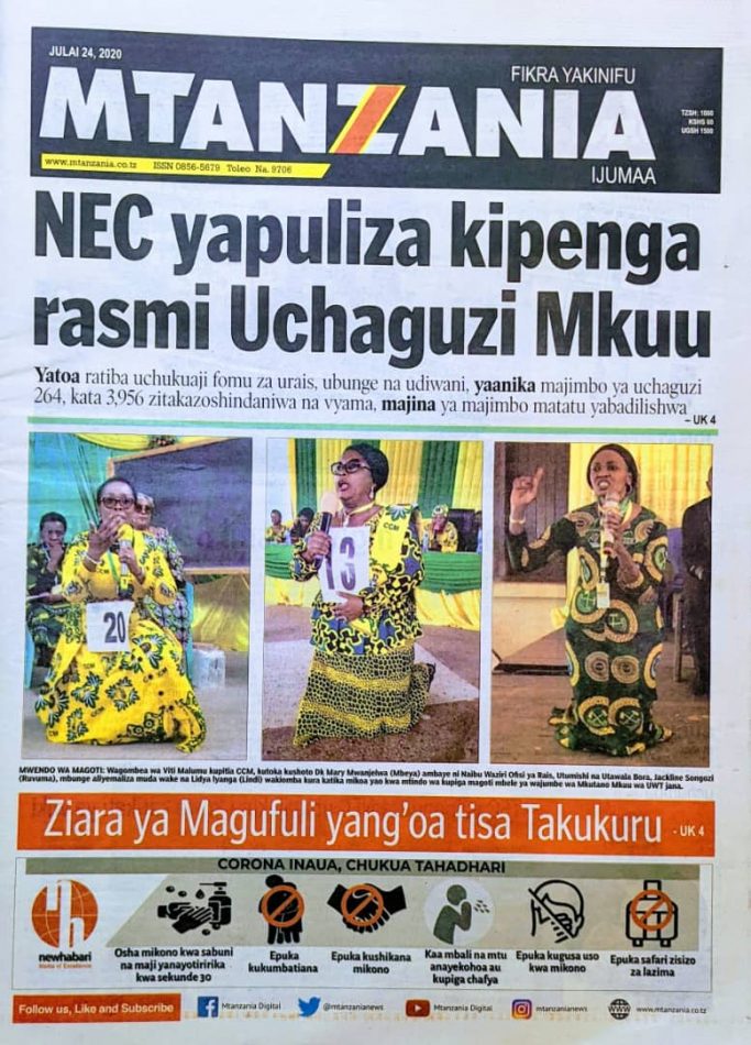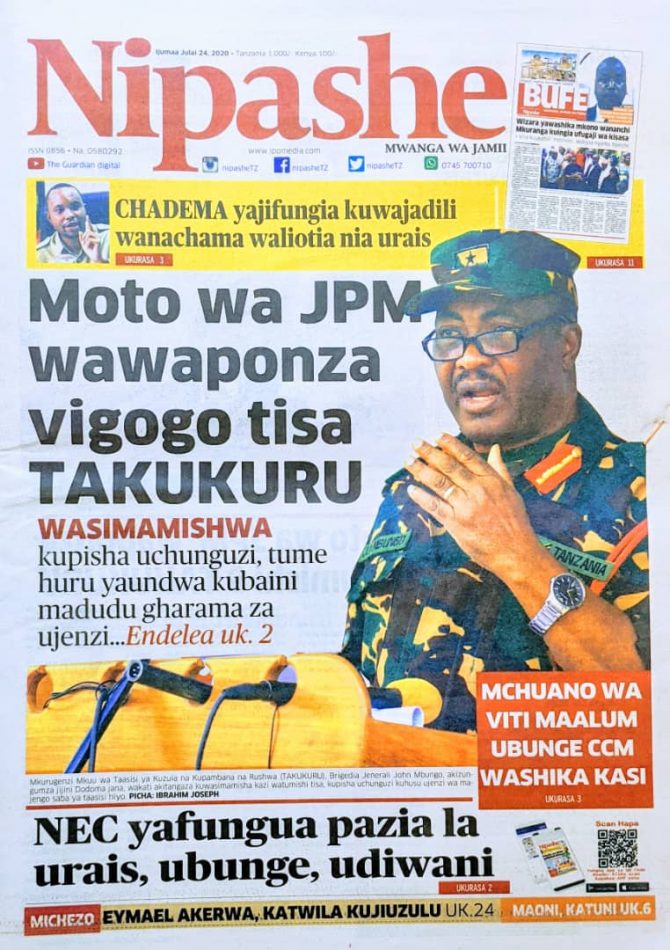 Hapa tumekuanikia kurasa za mbele na za nyuma za magazeti yote ya Tanzania leo Julai 24, 2020