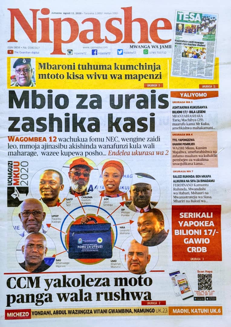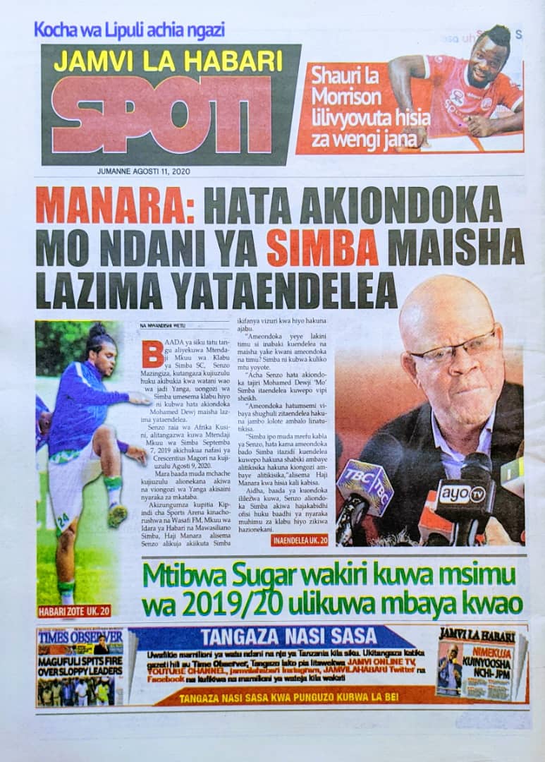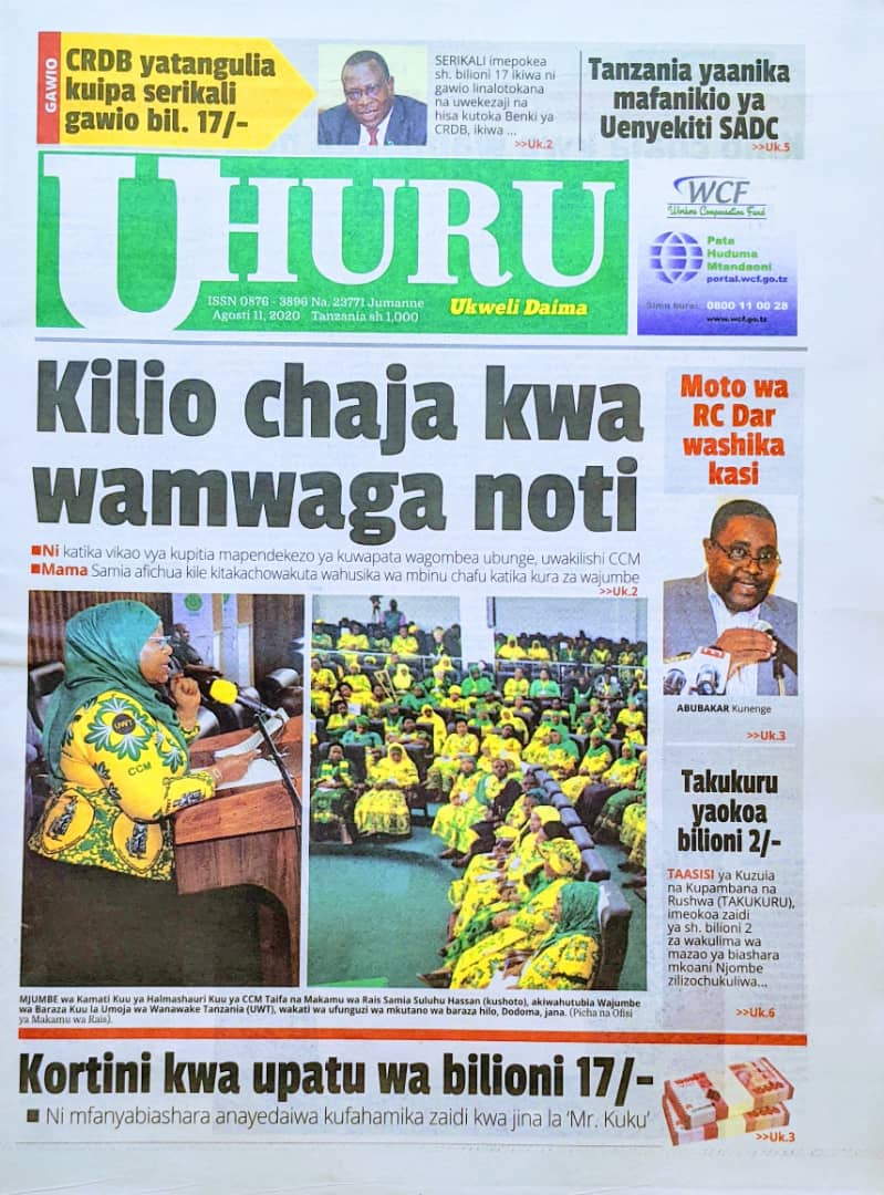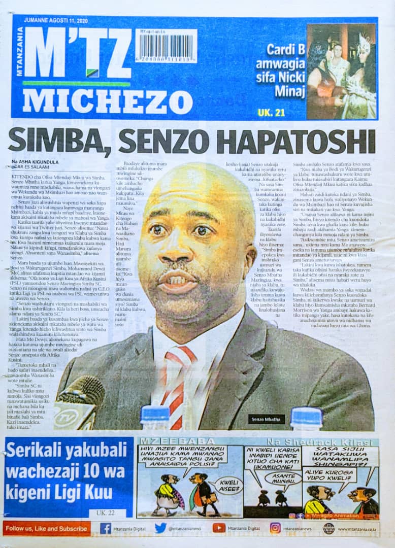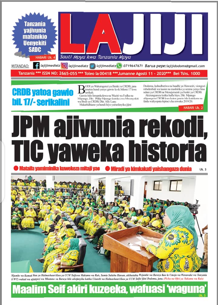 Soma Magazeti ya Tanzania Leo Jumanne, Agosti 11, 2020 Global Publishers August 11, 2020 0 Comments SHARE THIS: Hapa tumekuanikia kurasa za mbele na za nyuma za magazeti yote ya Tanzania leo Agosti 11, 2020 Usipitwe na Matukio, Install App Yako ya Kijanja na Namba Moja Tanzania ya Global Publishers Android ===> GooglePlay iOS ===> AppStore SHARE THIS: