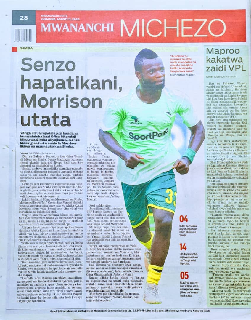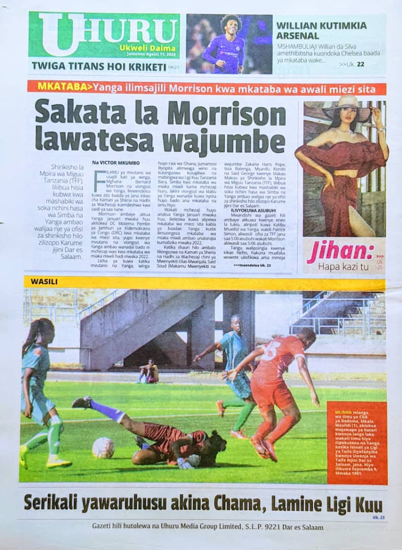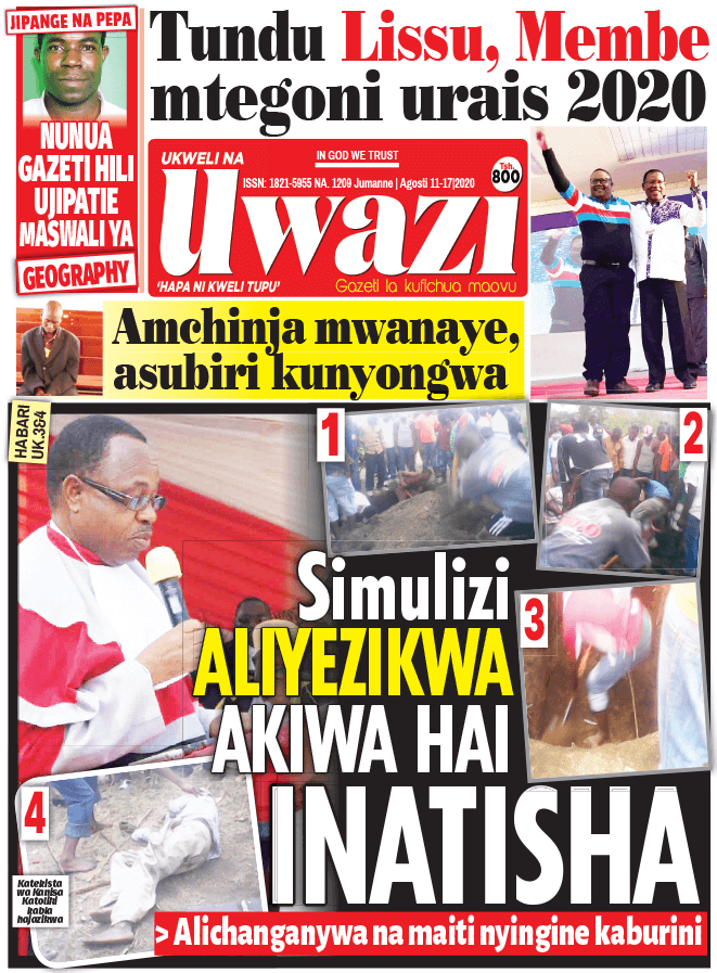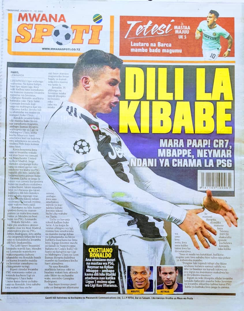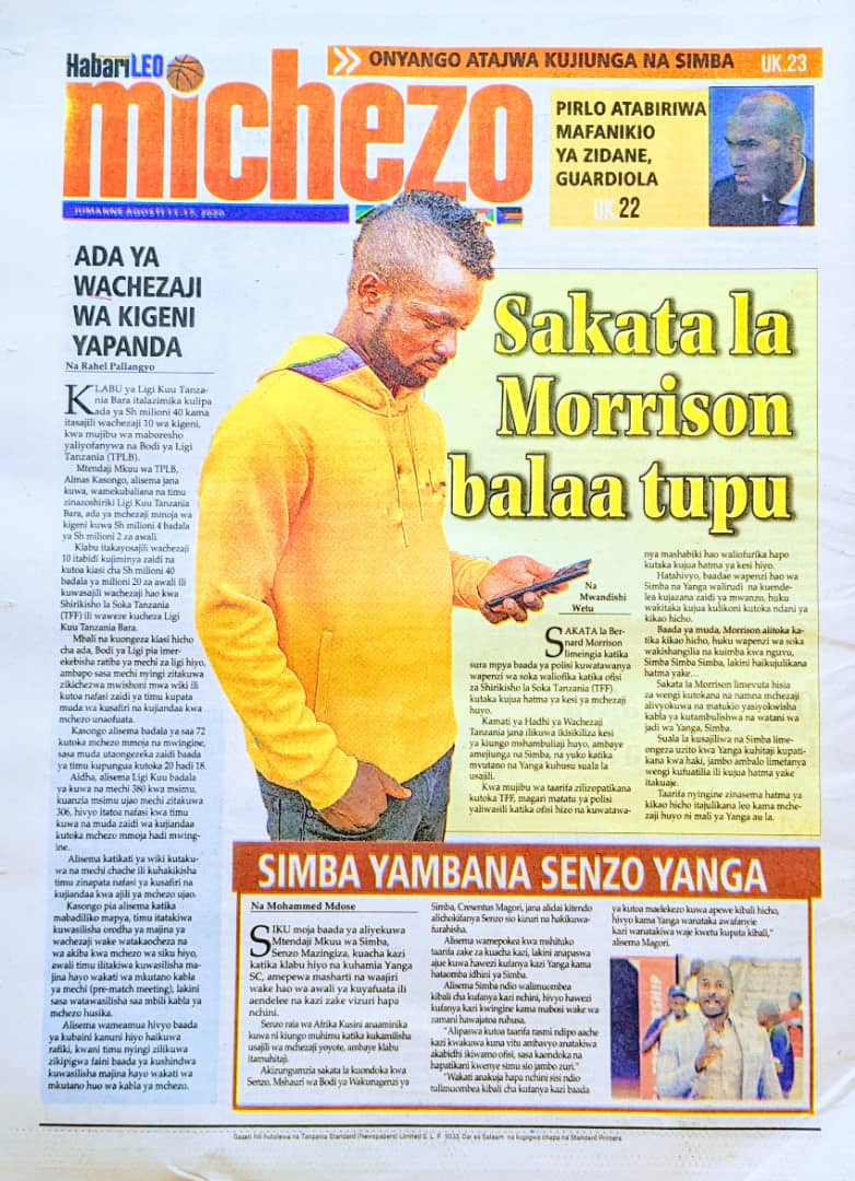 Soma Magazeti ya Tanzania Leo Jumanne, Agosti 11, 2020 Global Publishers August 11, 2020 0 Comments SHARE THIS: Hapa tumekuanikia kurasa za mbele na za nyuma za magazeti yote ya Tanzania leo Agosti 11, 2020 Usipitwe na Matukio, Install App Yako ya Kijanja na Namba Moja Tanzania ya Global Publishers Android ===> GooglePlay iOS ===> AppStore SHARE THIS: