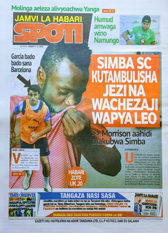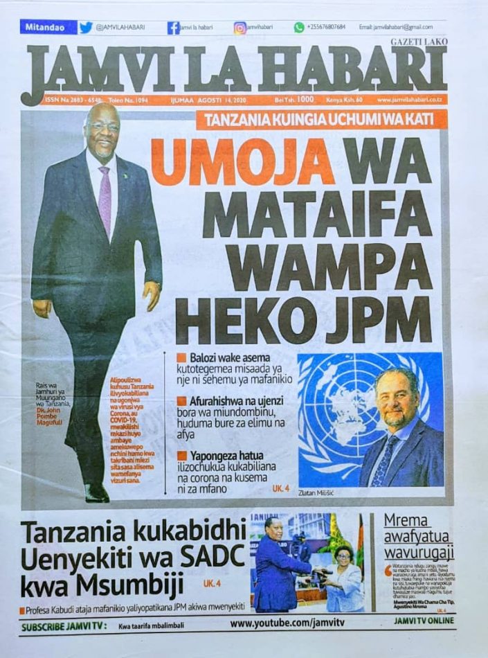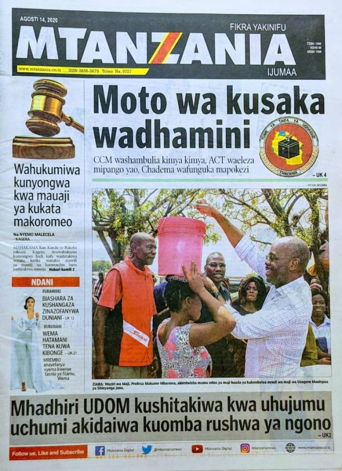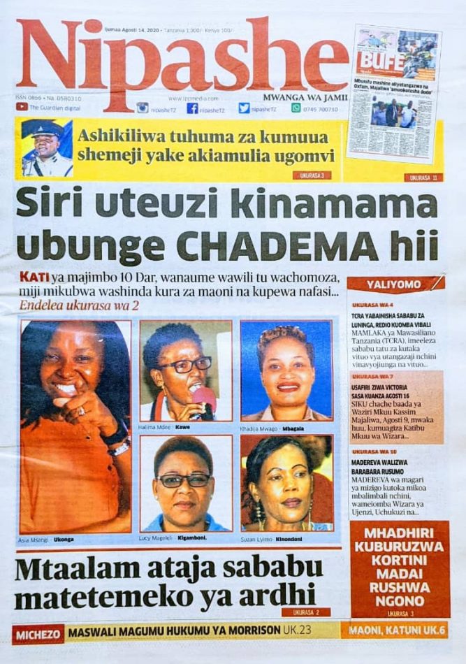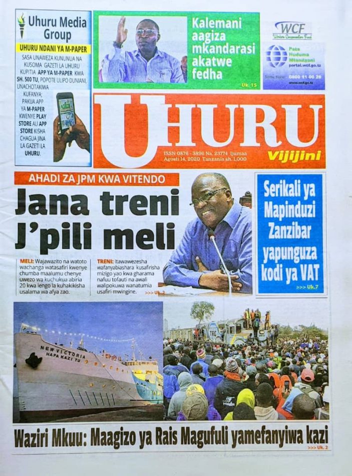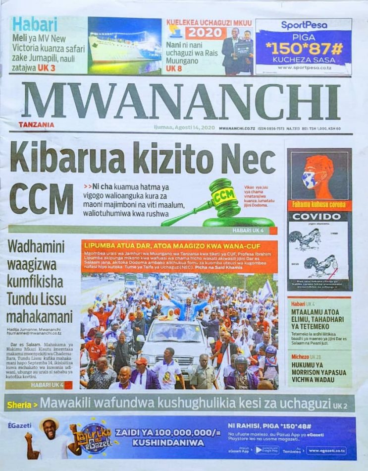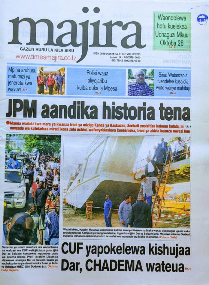 Magazeti ya Tanzania Leo Ijumaa, Agosti 14, 2020