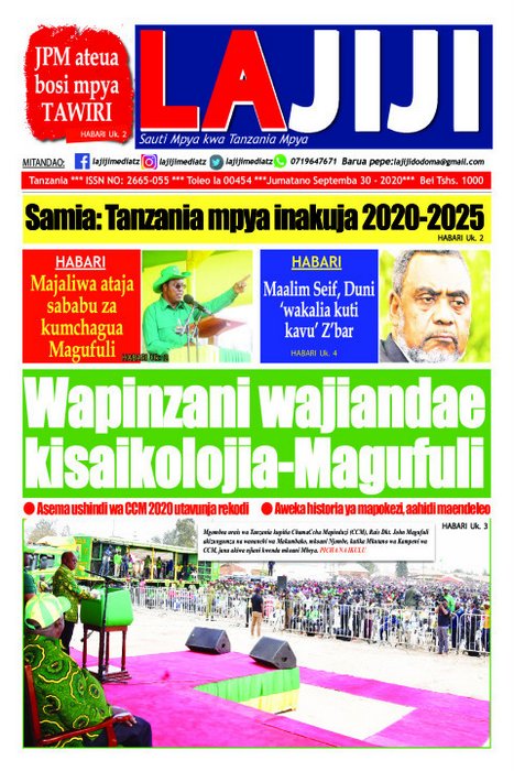 Soma Magazeti ya Tanzania Leo Septemba 30, 2020 Global Publishers September 30, 2020 0 Comments SHARE THIS: Hapa tumekuanikia kurasa za mbele na za nyuma za magazeti yote ya Tanzania leo Septemba 30, 2020 Usipitwe na Matukio, Install App Yako ya Kijanja na Namba Moja Tanzania ya Global Publishers Android ===> GooglePlay iOS ===> AppStore SHARE THIS: