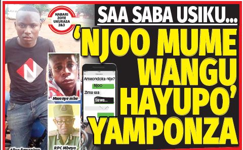 KYELA: Kisa kifuatacho ni uthibitisho tosha kwamba, mke wa mtu ni sumu, Gazeti la IJUMAA lina kisa na mkasa. ‘NJOO MUME WANGU HAYUPO’ Mkazi wa Kitongoji cha Bondeni ‘B’ Ubalozi Namba 5 Wilaya Kyela jijini Mbeya, Onesmo Nombo (35), yamemfika mazito kisa kuambiwa; “Njoo nyumbani mume wangu hayupo!”