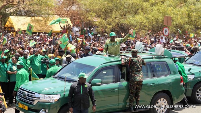 Rais Dkt. John Magufuli ambaye ni Mgombea Urais kwa tiketi ya CCM akiwapungia mkono wakazi wa Himo kwa sasa yuko katika mkoa wa Kilimanjaro katika kampeni za Lala salama kuelekea Uchaguzi Mkuu tarehe 28 Oktoba.