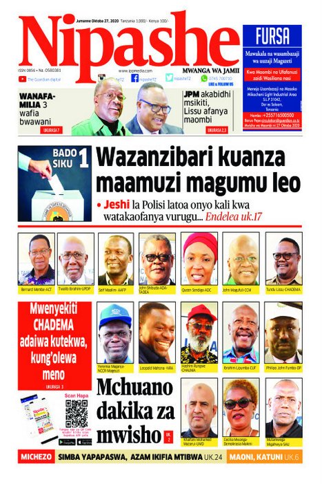 Hapa tumekuanikia kurasa za mbele na za nyuma za magazeti yote ya Tanzania leo Oktoba 27, 2020.