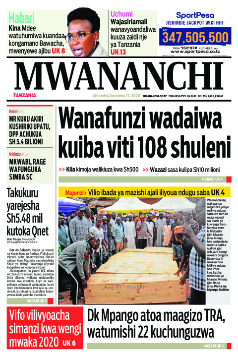 Hapa tumekuanikia kurasa za mbele na za nyuma za magazeti yote ya Tanzania leo Desemba 17, 2020.