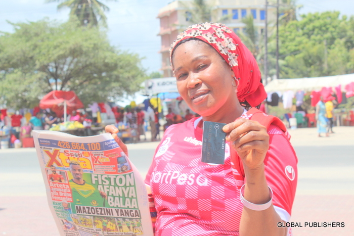 Msomaji wa Gazeti la SpotiXtra akionesha tiketi.