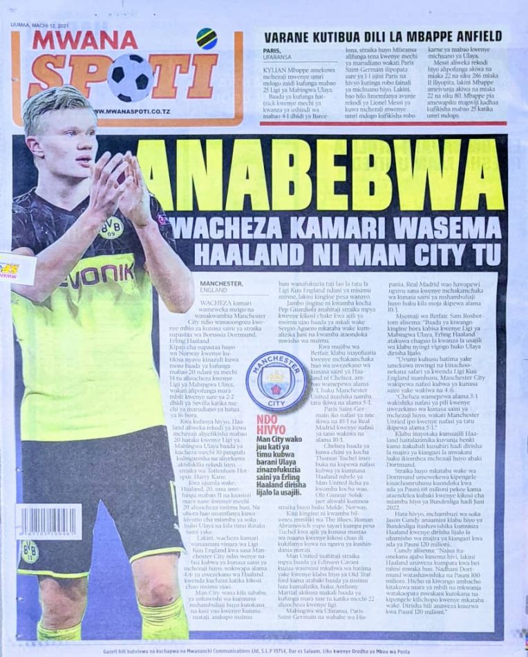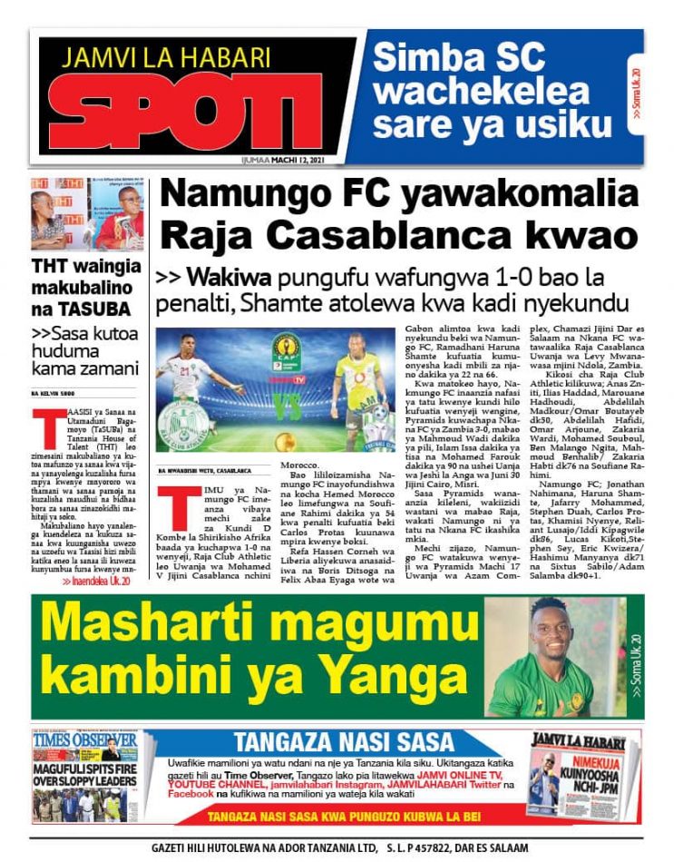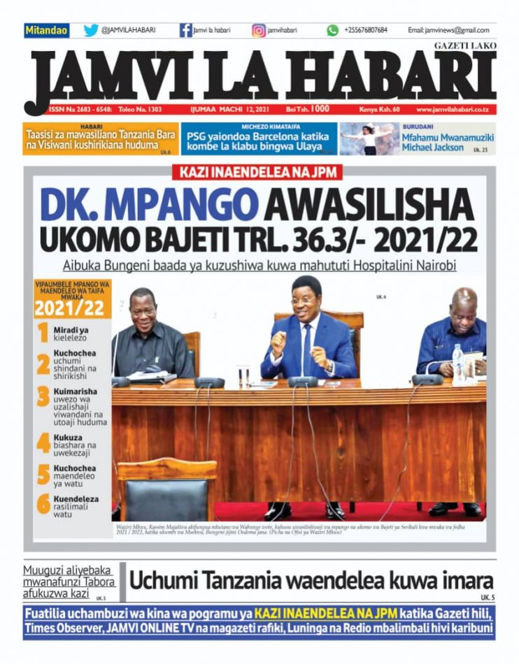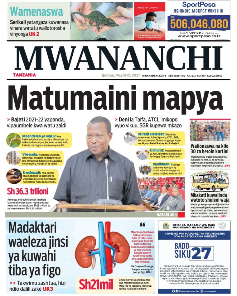 Hapa tumekuanikia kurasa za mbele na za nyuma za magazeti yote ya Tanzania leo Machi 12, 2021.