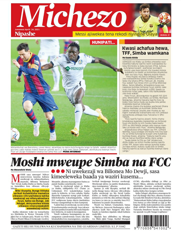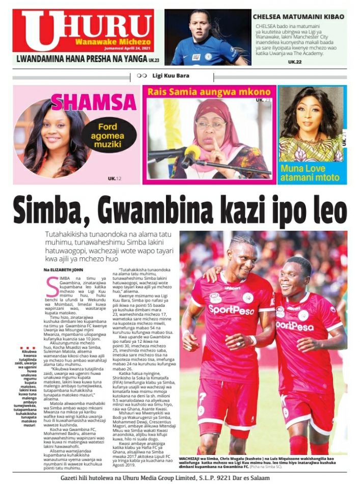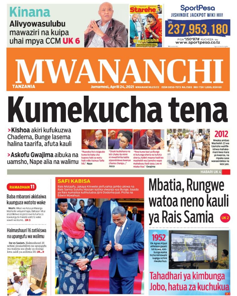 Hapa tumekuanikia kurasa za mbele na za nyuma za magazeti yote ya Tanzania leo Aprili 24, 2021.