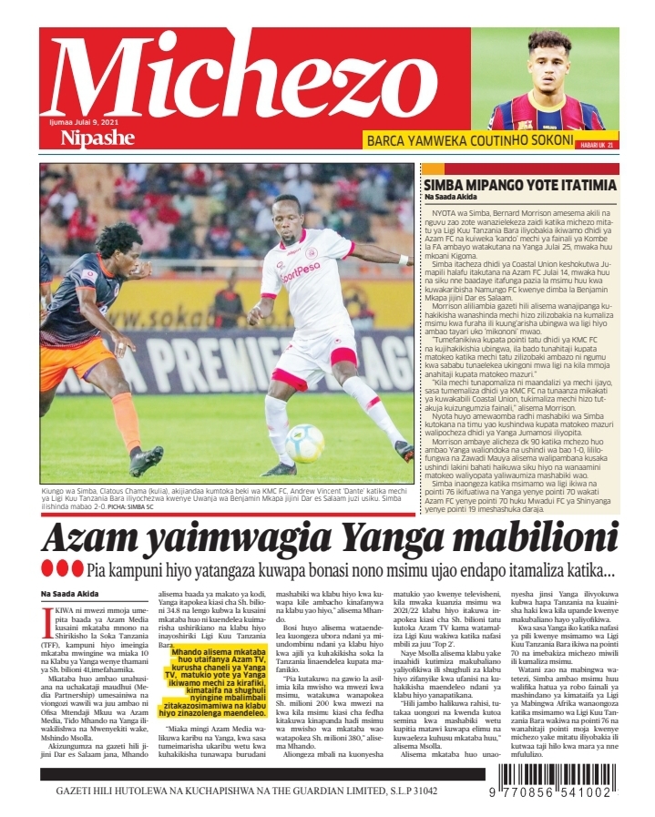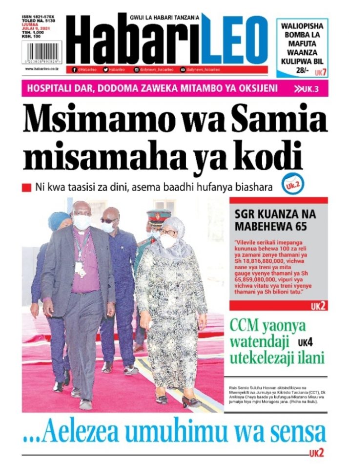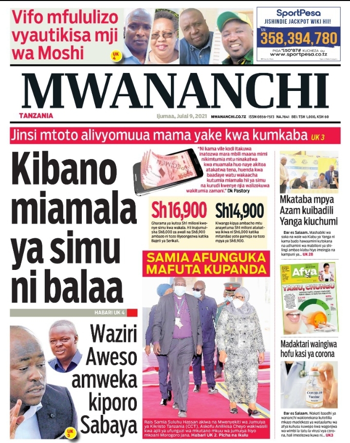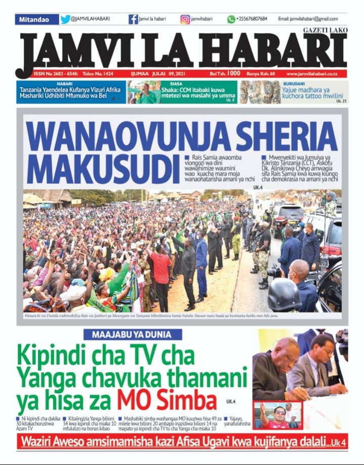 Habari Kubwa za Magazeti ya Tanzania leo Julai 9, 2021 Global Publishers July 9, 2021 0 Comments SHARE THIS: Hapa tumekuanikia kurasa za mbele na za nyuma za magazeti yote ya Tanzania leo Julai 9, 2021. Usipitwe na Matukio, Install App Yako ya Kijanja na Namba Moja Tanzania ya Global Publishers Android ===> GooglePlay iOS ===> AppStore SHARE THIS: