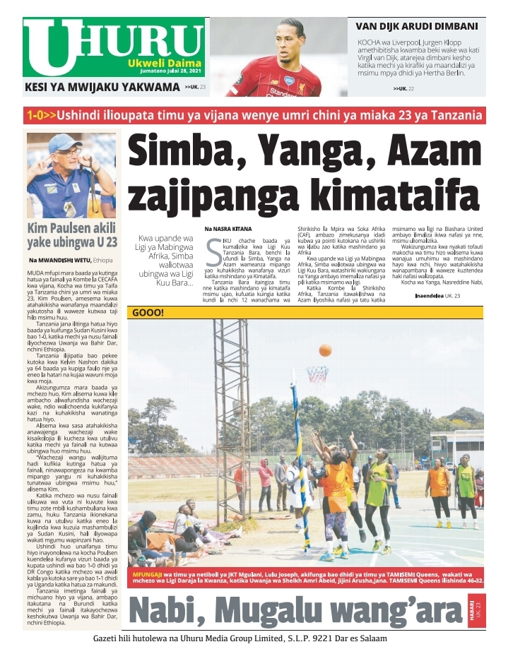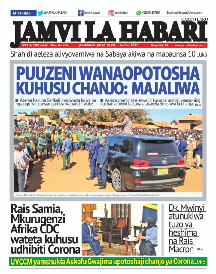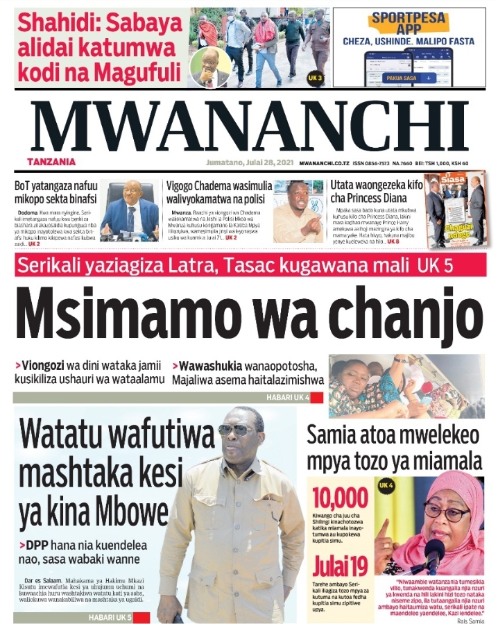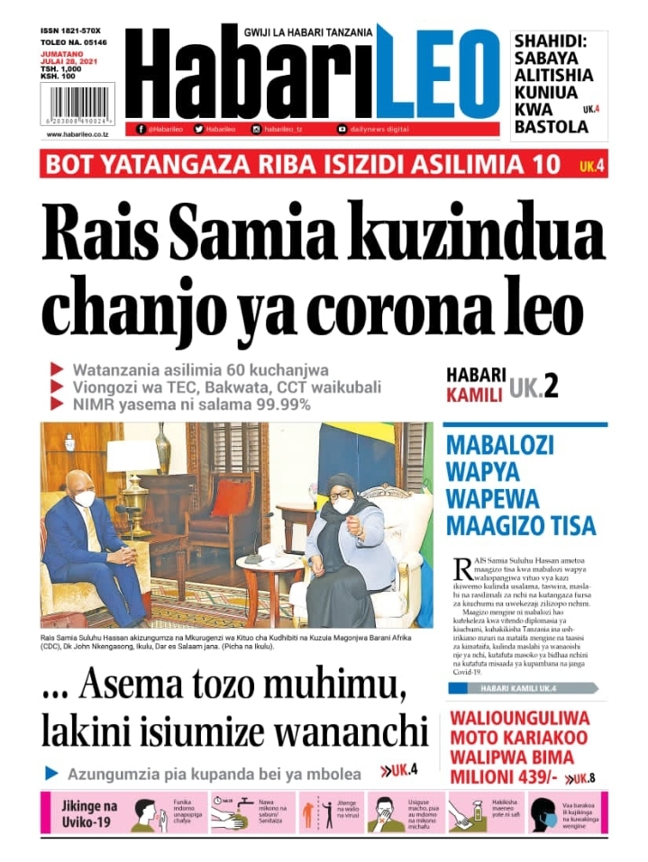 Hapa tumekuanikia kurasa za mbele na za nyuma za magazeti yote ya Tanzania leo Julai 28, 2021.