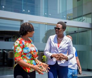 Mkurugenzi wa Mawasiliano Vodacom Tanzania Rosalynn Mworia akiwa akiwa kwenye mazungumzo na Naibu Spika wa Bunge la Jamhuri ya Tanzania Dkt Tulia Ackson wakati alipotembelea kampuni hiyo.