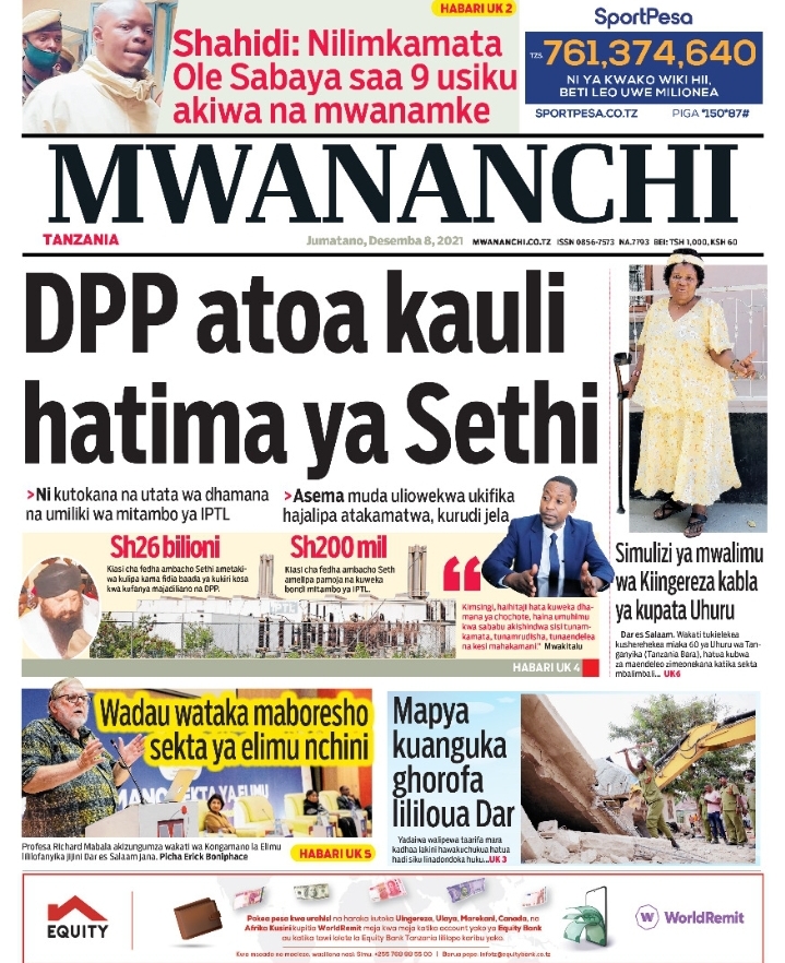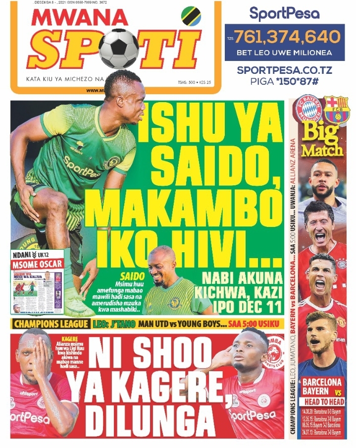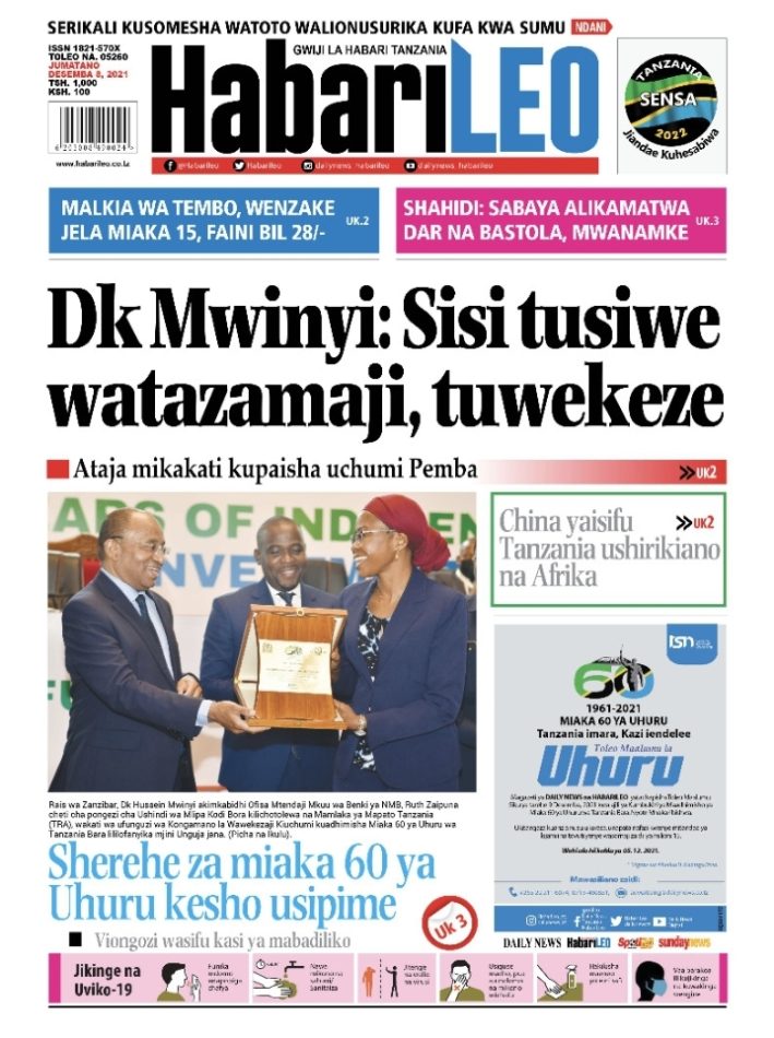Hapa tumekusogezea kurasa za mbele na za nyuma za magazeti yote ya Tanzania leo Desemba 8, 2021.