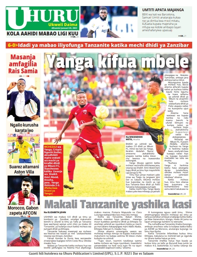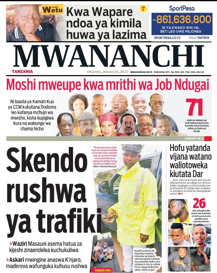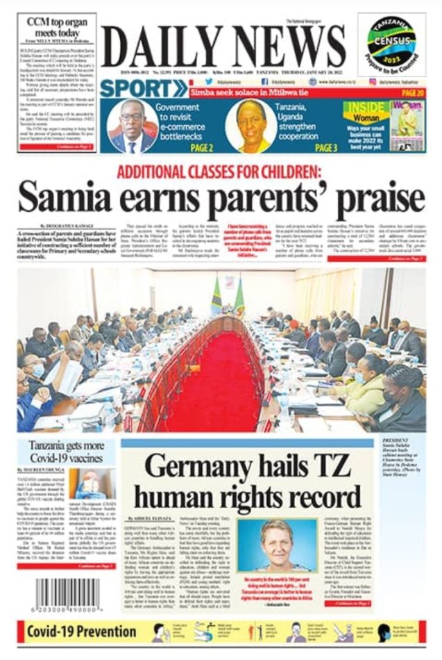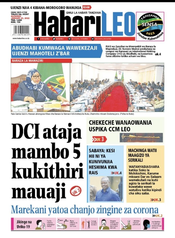 Hapa tumekusogezea kurasa za mbele na za nyuma za magazeti yote ya Tanzania leo Januari 20, 2022
