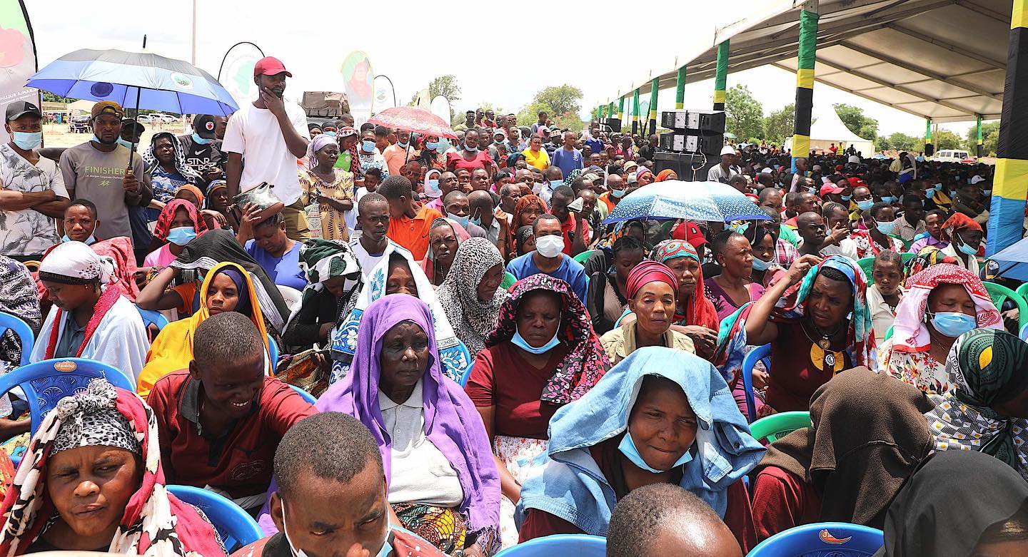 Rais wa Jamhuri ya Muungano wa Tanzania Mhe. Samia Suluhu Hassan akizungumza na Wananchi katika Sherehe za uwekaji wa jiwe la msingi Ujenzi wa Barabara ya mzunguko wa nje katika mji wa Dodoma itakayotoka Ihumwa-Matumbulu-Nala-Veyula-Ihumwa Kilometa 112.3 katika Sherehe zilizofanyika katika eneo la Veyula Jijini Dodoma leo tarehe 09 Februari, 2022.