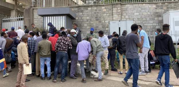 Baadhi ya vijana hao wa Ethiopia katika ubalozi huo walionekana wakiwa na hati zao za kibinafsi.
