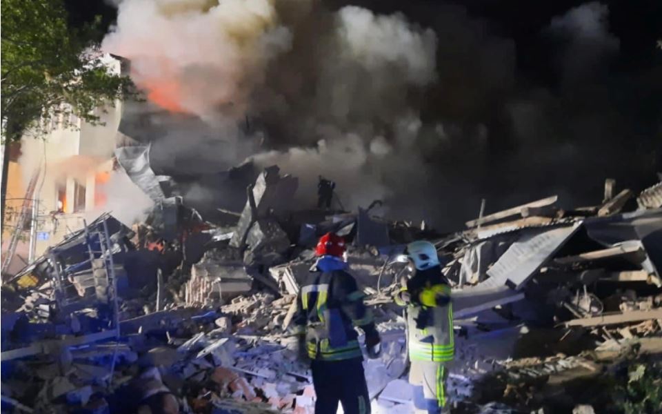 Timu ya wanahabari ya Zelenskyy ilishiriki picha za matukio ya shambulio hilo, zikionyesha huduma za dharura zikiwa nje ya jengo hilo linalowaka moto.