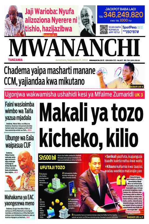 HAPA tumekusogezea kurasa za mbele na za nyuma za magazeti yote ya Tanzania leo Septemba 21