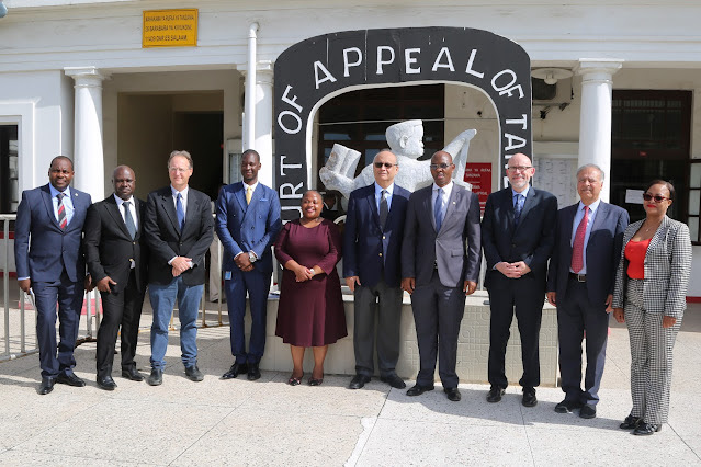 Mtendaji Mkuu wa Mahakama ya Tanzania, Prof. Elisante Ole Gabriel (wa nne kulia) akiwa katika picha ya pamoja na Mkurugenzi wa Kanda ya Afrika anayeshughulikia Ukuzaji wa Uchumi na Taasisi kutoka Benki ya Dunia (WB), Bw. Asad Alam (wa tano kulia) pamoja na sehemu ya Maafisa wa Mahakama na Maafisa kutoka Benki ya Dunia walioambatana na Mkurugenzi huyo.