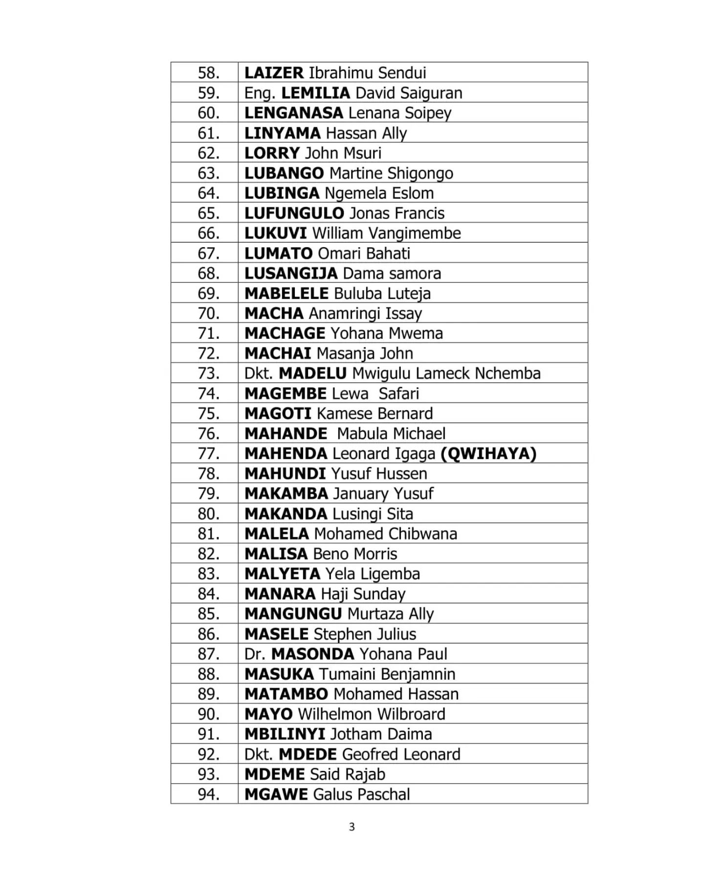 Orodha ya Wanachama Walioteuliwa Kugombea Nafasi ya Ujumbe wa NEC viti 15 Tanzania BARA Global Publishers December 7, 2022 0 Comments SHARE THIS: Orodha ya wanachama walioteuliwa kugombea nafasi ya ujumbe wa NEC viti 15 Tanzania BARA SHARE THIS: