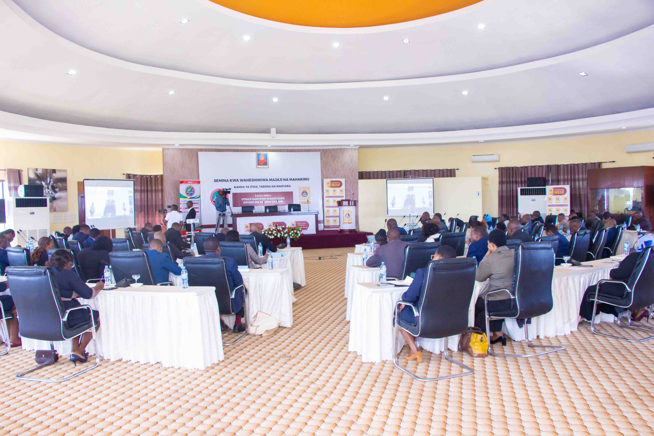 Mhe. Jaji John Kahyoza, rais wa Chama Cha Majaji na Mahakimu Tanzania (JMAT), akizungumza wakati wa Semina ya Waheshimiwa Majaji na Mahakimu wa Kanda ya Ziwa, Tabora, Manyara na Kigoma