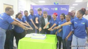 Sambamba na hilo viongozi hao wamewatembelea na kuwahudumia wateja wa Tigo waliokuwepo katika duka la Tigo Palm Village, tukio liliambatana na ukataji wa keki kama ishara mojawapo ya kuwashukuru kwa kuchagua kutumia mtandao huo ulishika namba kwa kutoa huduma mwaka huu.