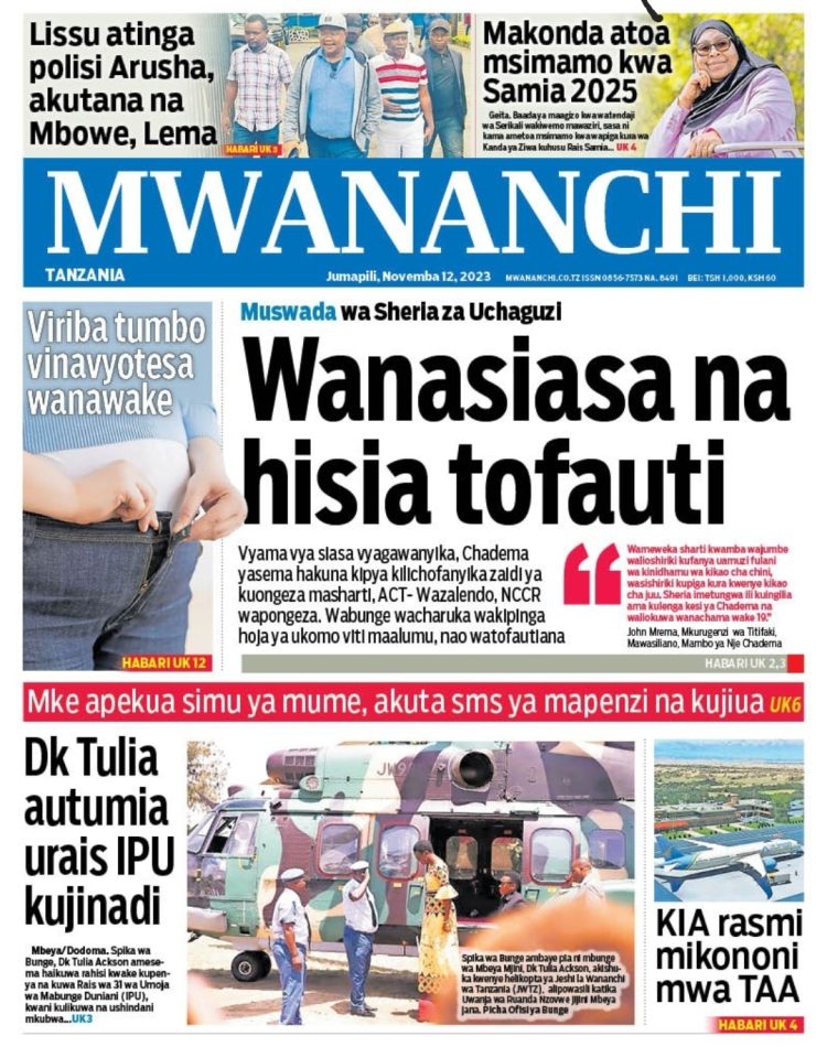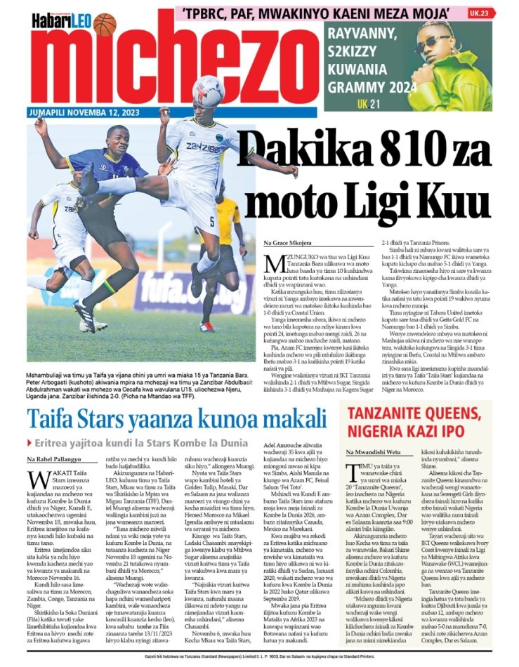 HAPA tumekusogezea kurasa za mbele na za nyuma za magazeti yote ya Tanzania leo Nov 12, 2023