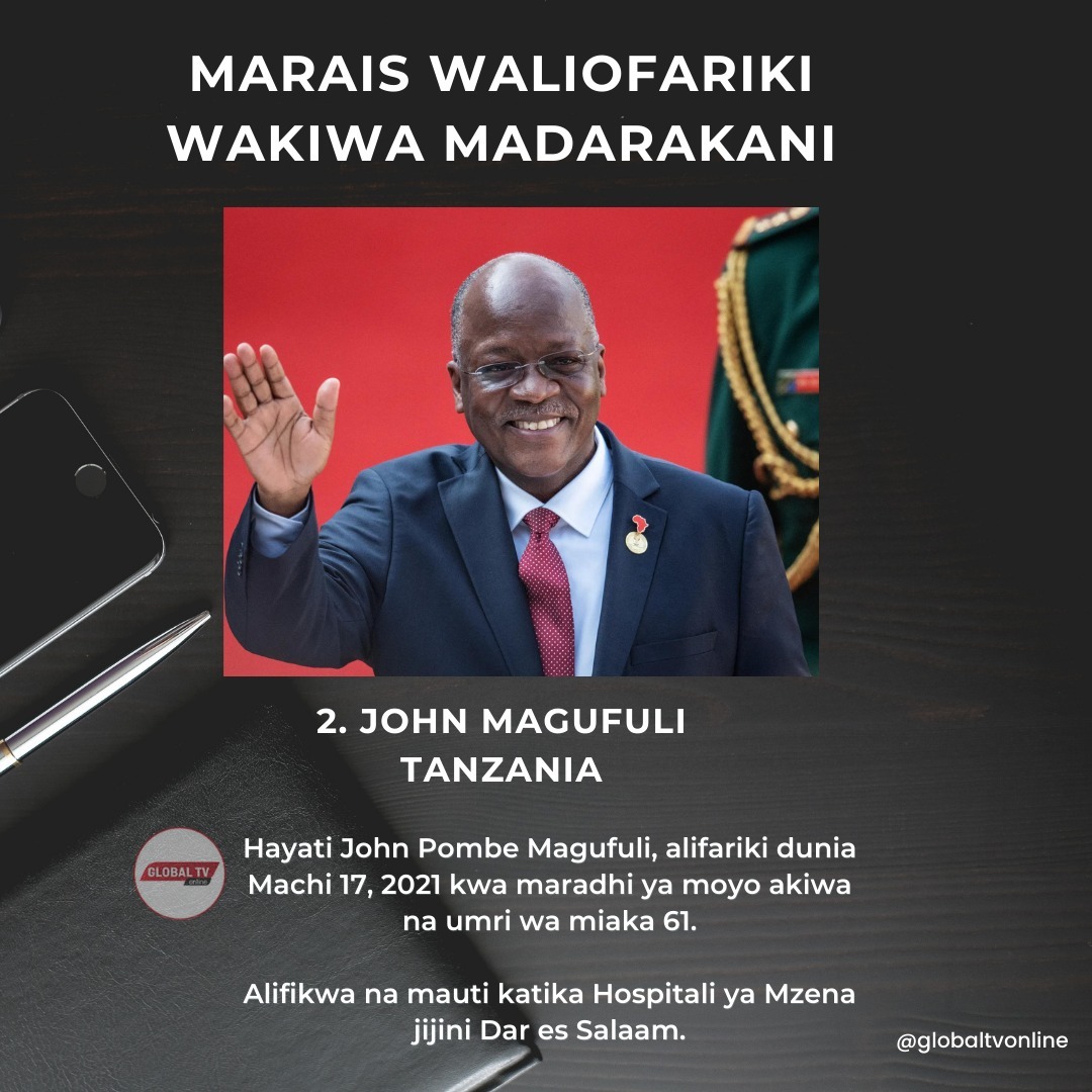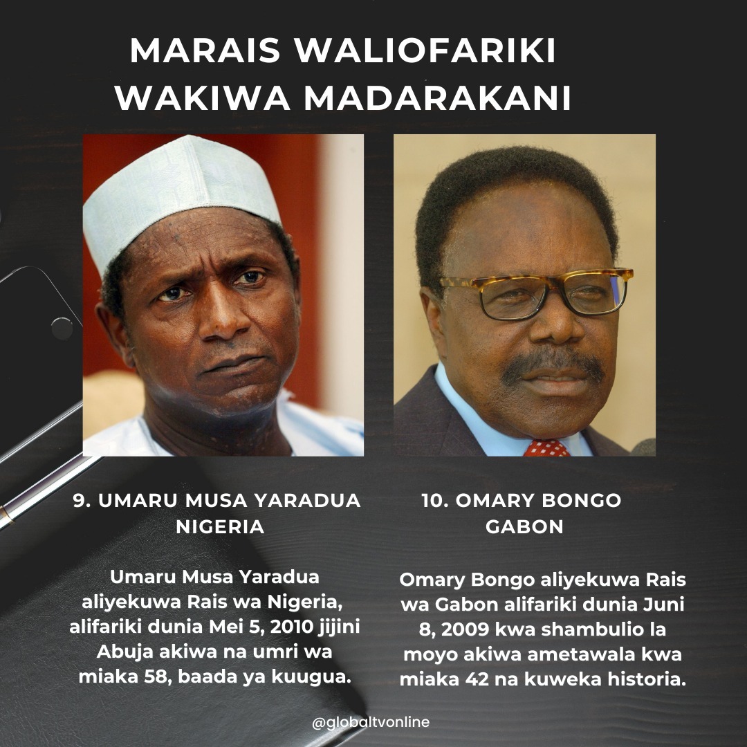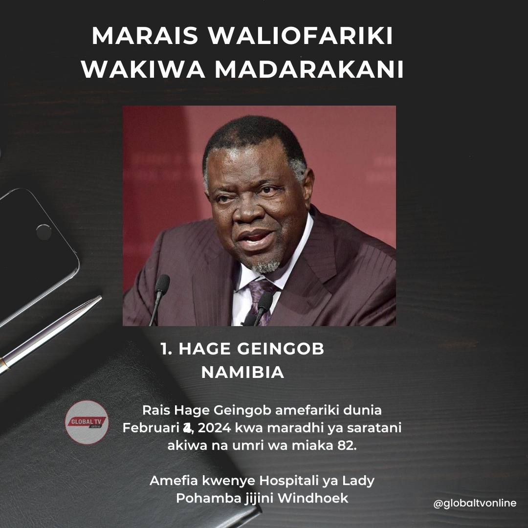 Wakati Rais wa Namibia, Hage Geingob akitangazwa kufariki dunia Februari 4, 2024, ifuatayo ni orodha ya marais wa nchi za Afrika waliofikwa na mauti wakiwa madarakani.