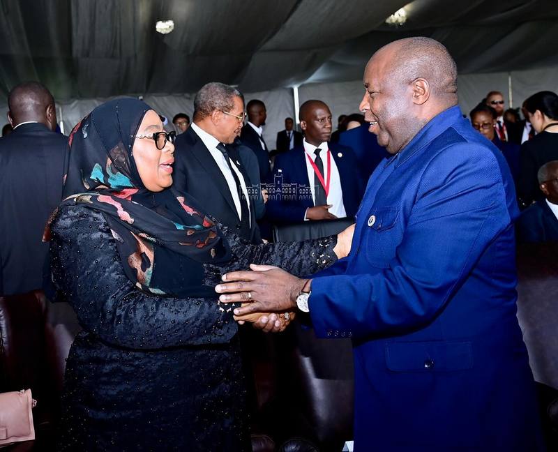 Rais Samia Suluhu Hassan amehudhuria shughuli za mazishi ya Kitaifa ya aliyekuwa Rais wa Namibia Marehemu Dkt. Hage Geingob katika uwanja wa Michezo wa Uhuru Jijini Windhoek tarehe 24 Februari, 2024.