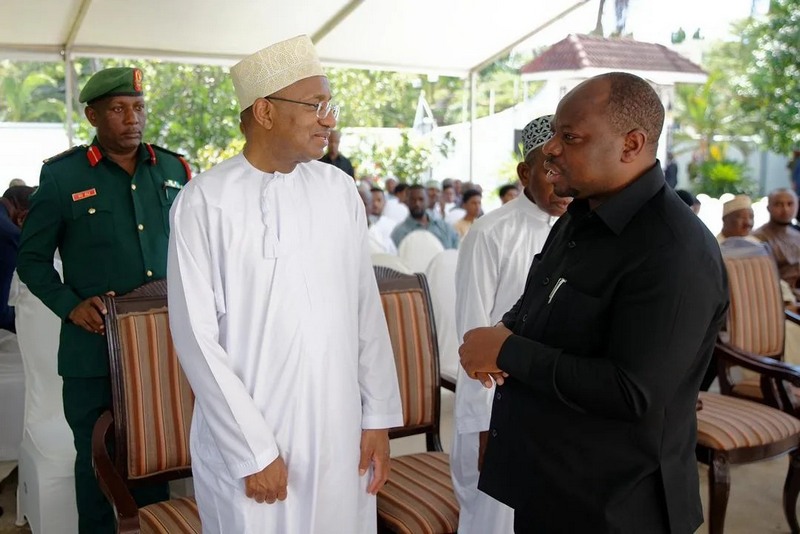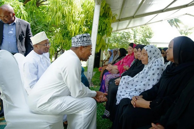 Rais wa Zanzibar na Mwenyekiti wa Baraza la Mapinduzi Mhe. Dk. Hussein Ali Mwinyi akiwa Mikocheni nyumbani kwa baba yake akiendelea kupokea mkono wa pole kutoka kwa Rais Mstaafu Jamhuri ya Muungano wa Tanzania Jakaya Mrisho Kikwete na viongozi, ndugu, jamaa na marafiki kufuatia kifo cha Rais Mstaafu Mzee Ali Hassan Mwinyi kilichotokea jana tarehe: 29 Februari 2024.