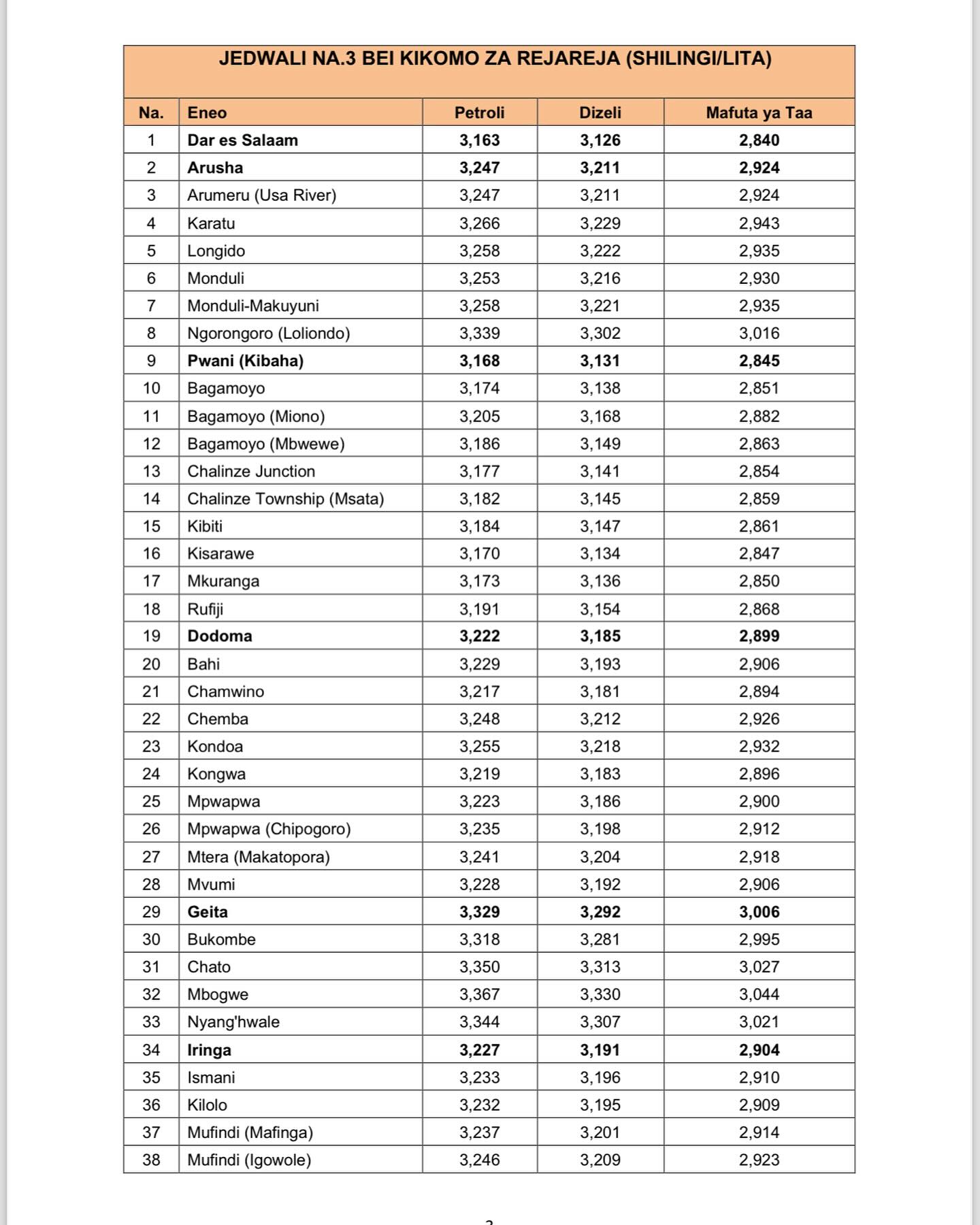Mamlaka ya Udhibiti wa Huduma za Nishati na Maji (Ewura), imetangaza bei mpya za mafuta zitakazoanza kutumika leo Jumatano Machi 6, 2024 huku bei ya Petroli na dizeli zikipanda ikilinganishwa na mwezi Feburuari.