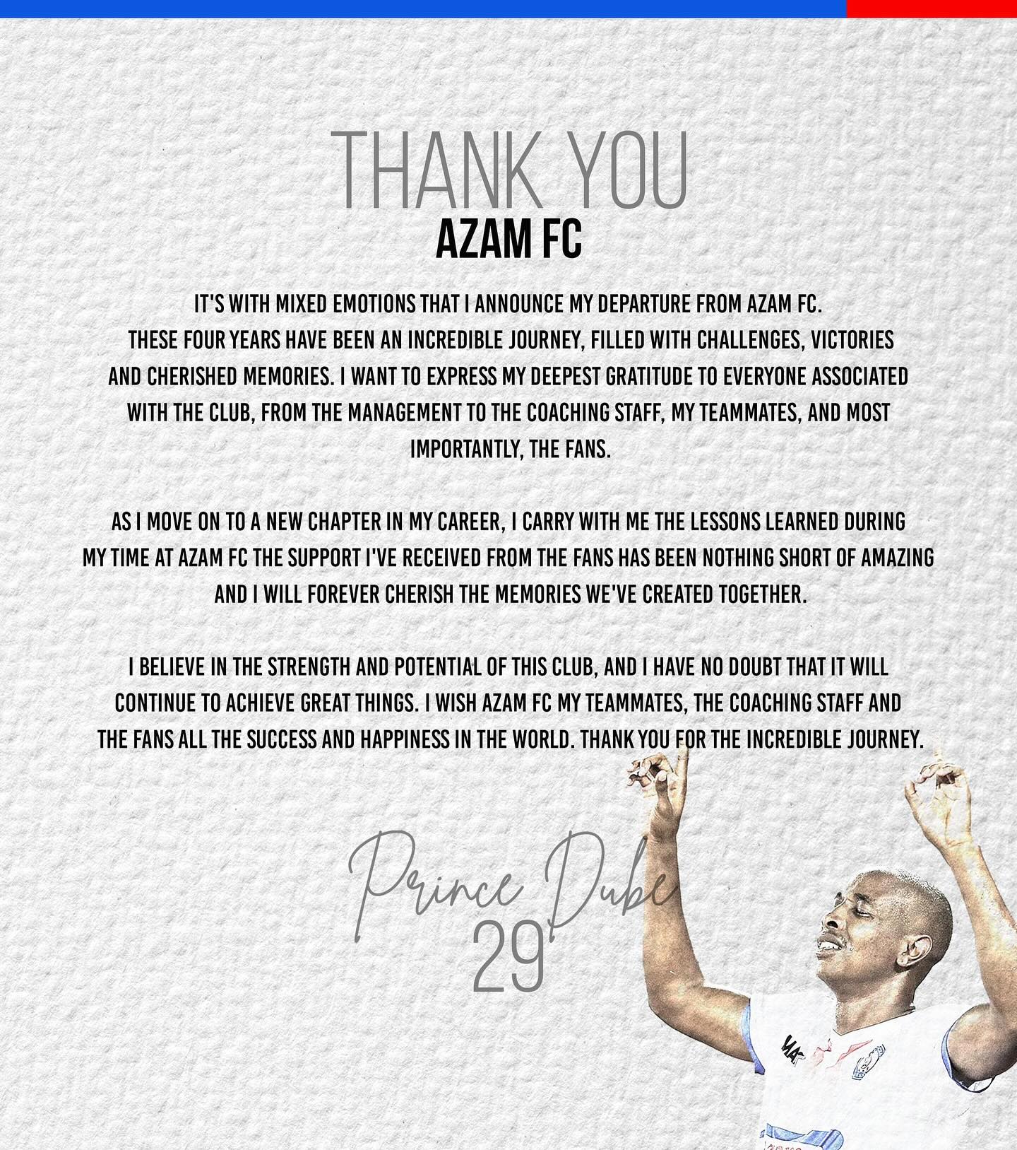 “Nina imani na nguvu na uwezo wa klabu hii, na sina shaka Azam FC itaendelea kufikia mambo makubwa. Nawatakia Azam FC, wachezaji wenzangu makocha na mashabiki mafanikio na furaha. Ahsante kwa safari ya ajabu.”