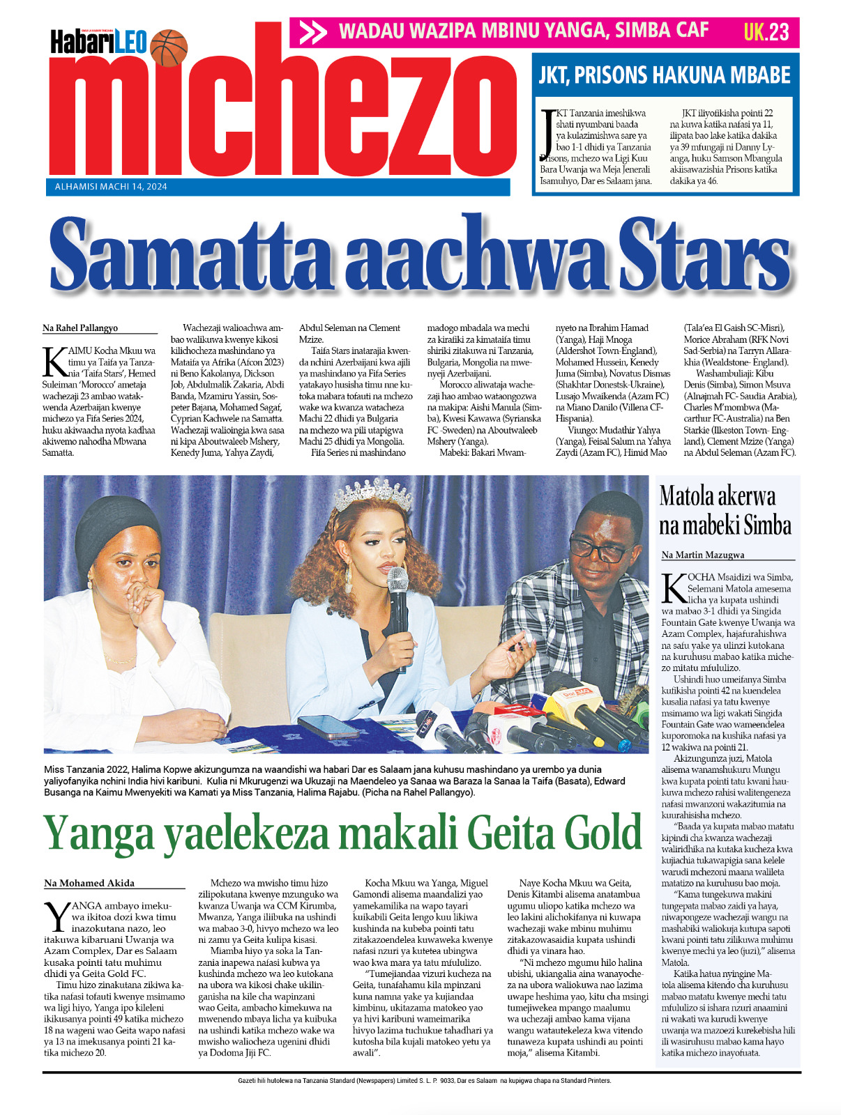 Habari kubwa za Magazeti ya Tanzania leo Machi 14, 2024