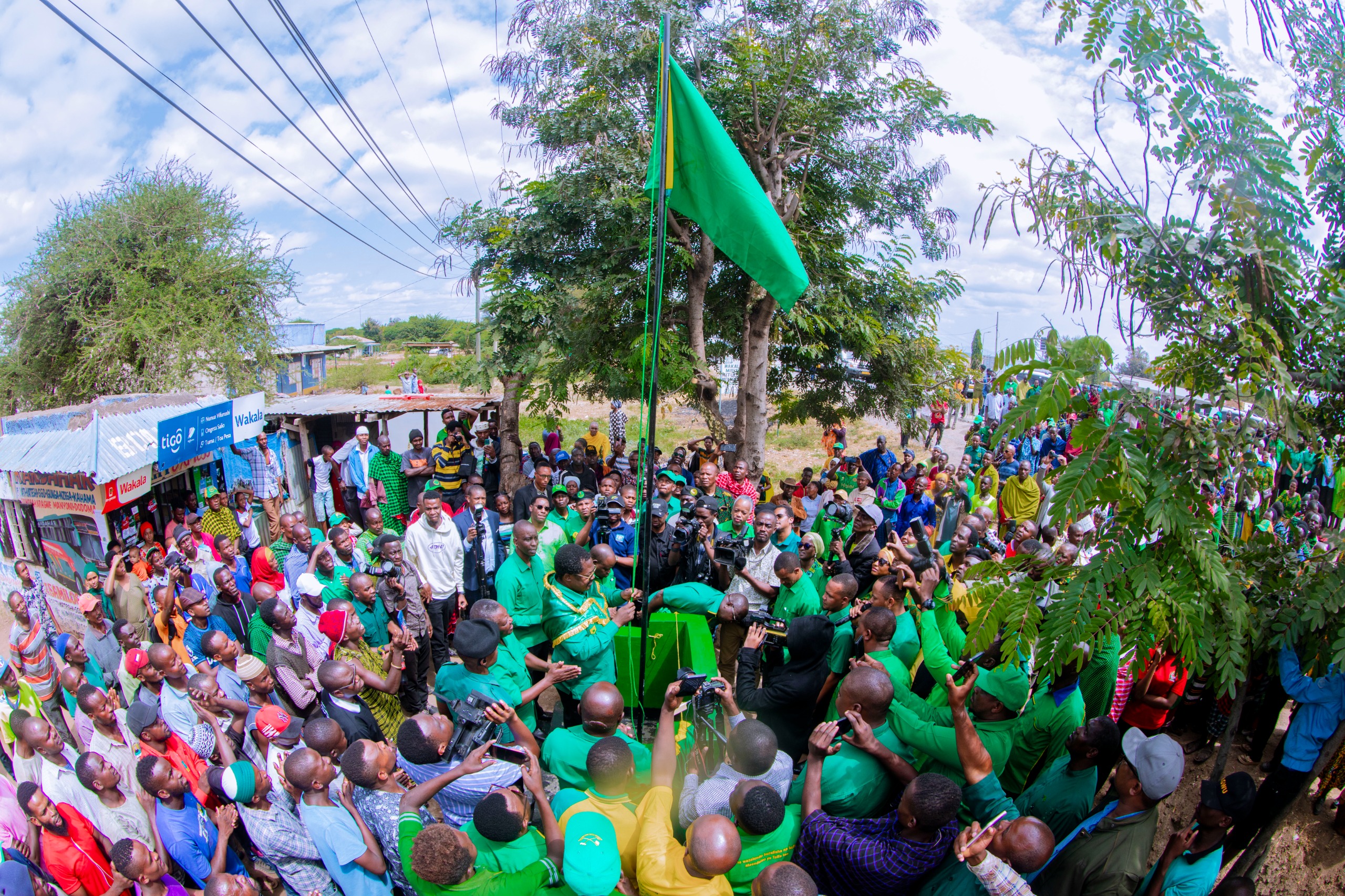 Katibu Mkuu wa Chama Cha Mapinduzi (CCM) Balozi Dkt Emmanuel John Nchimbi akizindua Shina la Wakereketwa Wajasiriamali wa Tarime Group, lenye wanachama 200, eneo la Makuyuni, Wilaya ya Monduli, mkoani Arusha.