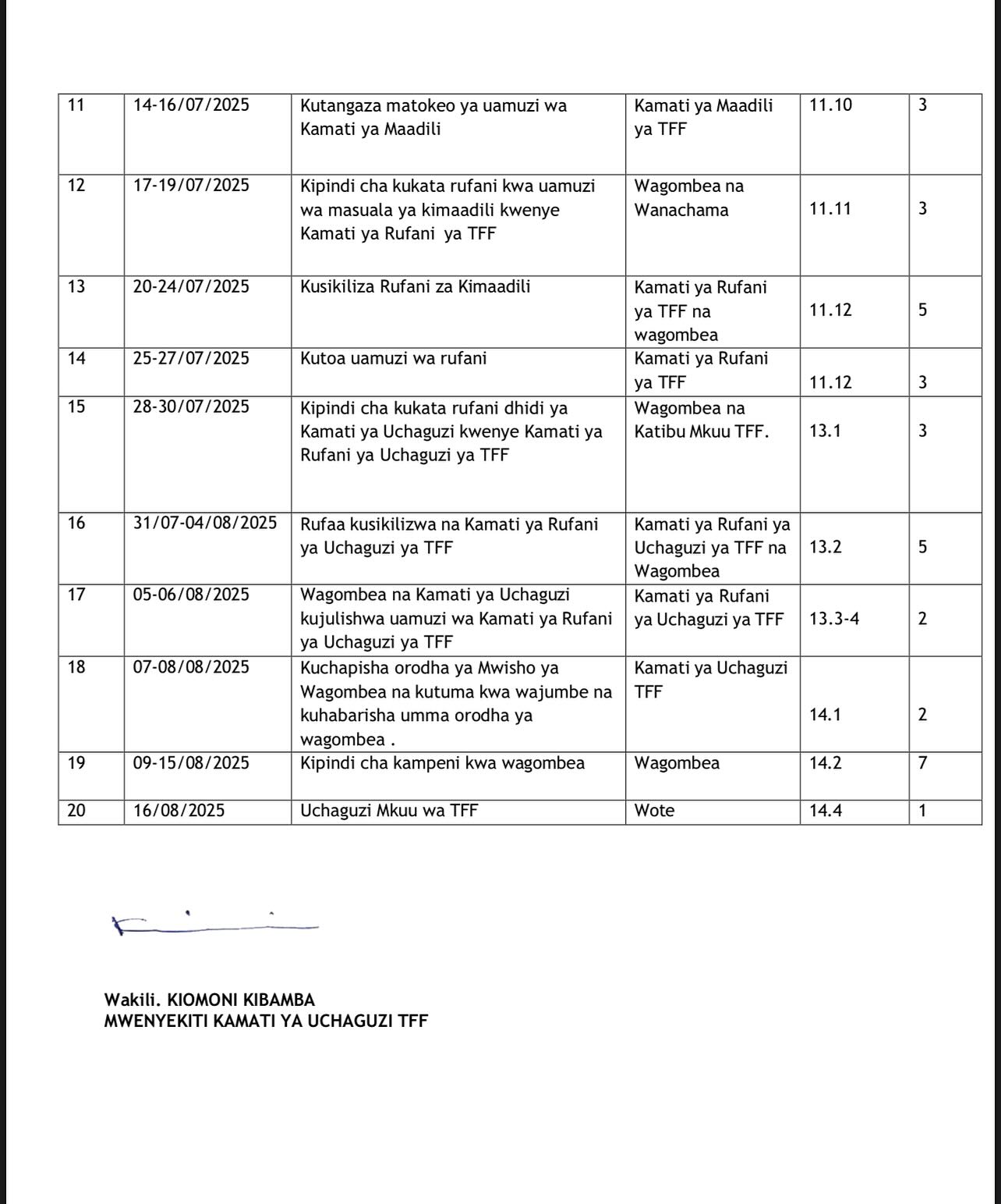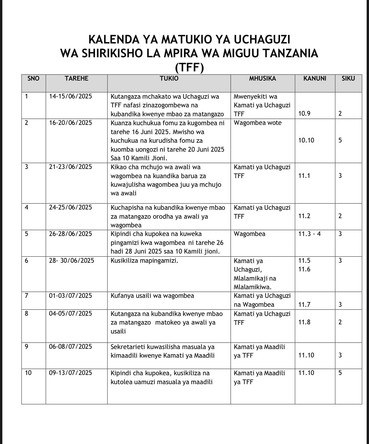 Kamati ya Uchaguzi ya Shirikisho la Mpira wa Miguu Tanzania (TFF) inatangaza Uchaguzi Mkuu wa TFF utakaofanyika tarehe 16/08/2025 jijini Tanga.